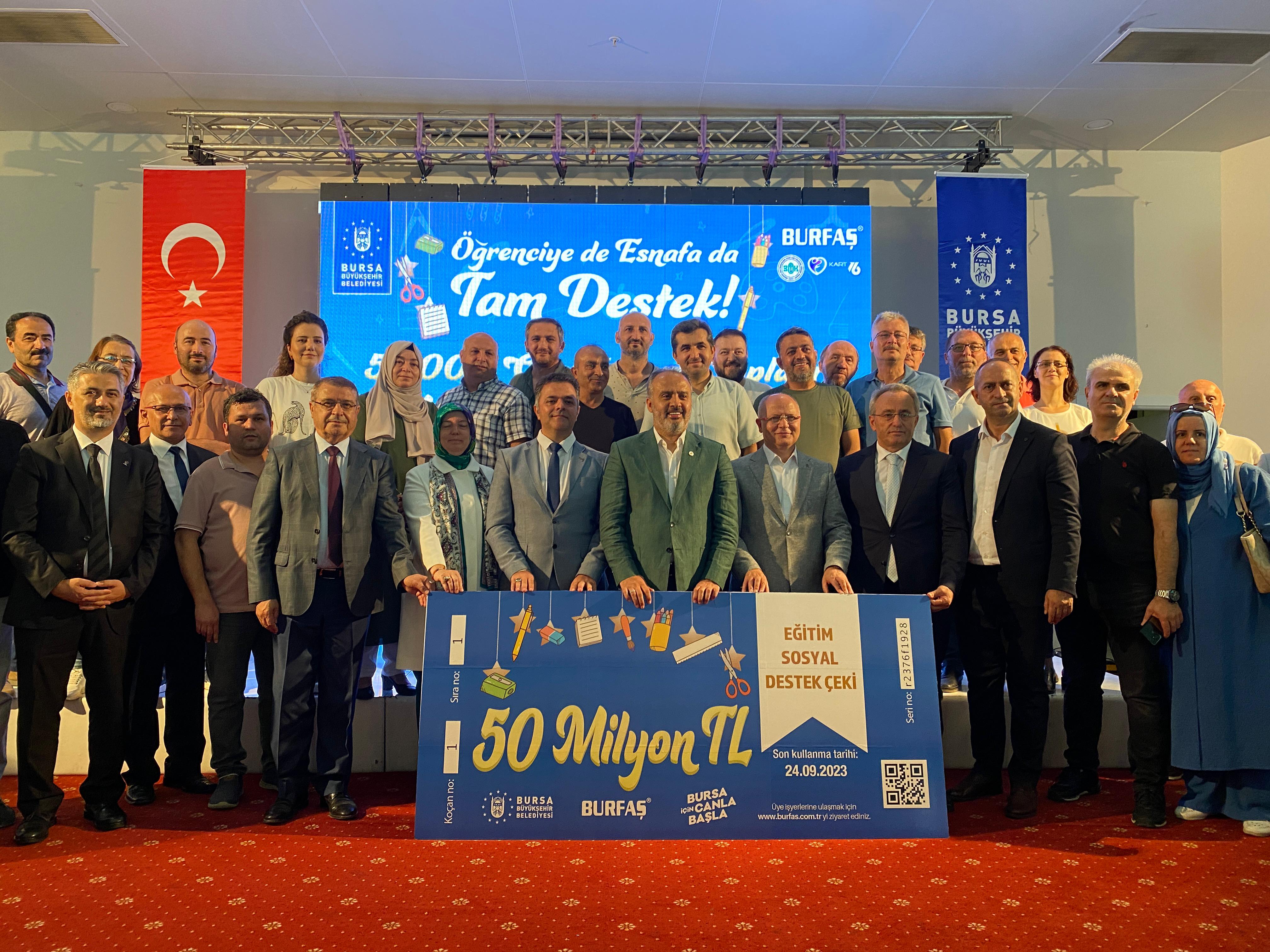 Bursa Büyükşehir Belediyesi tarafından ihtiyaç sahibi 50 bin çocuğa dağıtılacak, toplam 50 milyon TL'lik 'Eğitim Sosyal Destek Çeki' projesinin tanıtım toplantısı, Atatürk Kongre Merkezi’nde gerçekleştirildi.