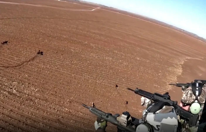 ABD'nin Teksas eyaletinde tarım alanlarına zarar veren yaban domuz sürüleri, sıradışı bir yöntemle avlanıyor. Helikoptere binen eli silahlı Amerikalılar, domuzların toprağı parçalamasını ve bitkileri yemesini önlemek için istilacı hayvanları helikopterden vuruyor.
