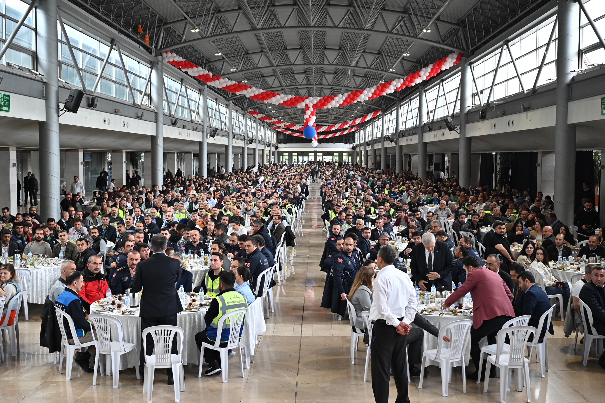 Yüzyılın felaketinde ilk olarak Gaziantep’in Nurdağı ve İslahiye ilçelerinde, ardından Hatay’da arama kurtarmadan enkaz kaldırmaya, konteyner kentler oluşturulmasından yardımların dağıtılmasına kadar her alanda aktif görev alan Bursa Büyükşehir Belediyesi, bölgede yaraları sarmaya devam ediyor. Depremin ilk gününden bu yana yaklaşık 2500 personel ve 700 araç bölgede aktif olarak görev alırken, Bursa Büyükşehir Belediye Başkanı Alinur Aktaş, afet bölgesinde özveriyle çalışan personelle buluştu. Atatürk Kongre ve Kültür Merkezi Fuaye Alanı’nda düzenlenen ve Sanayi ve Teknoloji Bakanı Mustafa Varank’ın da katıldığı toplantıda konuşan Büyükşehir Belediye Başkanı Alinur Aktaş, afet bölgesinde görev alan tüm personele teşekkür etti.
