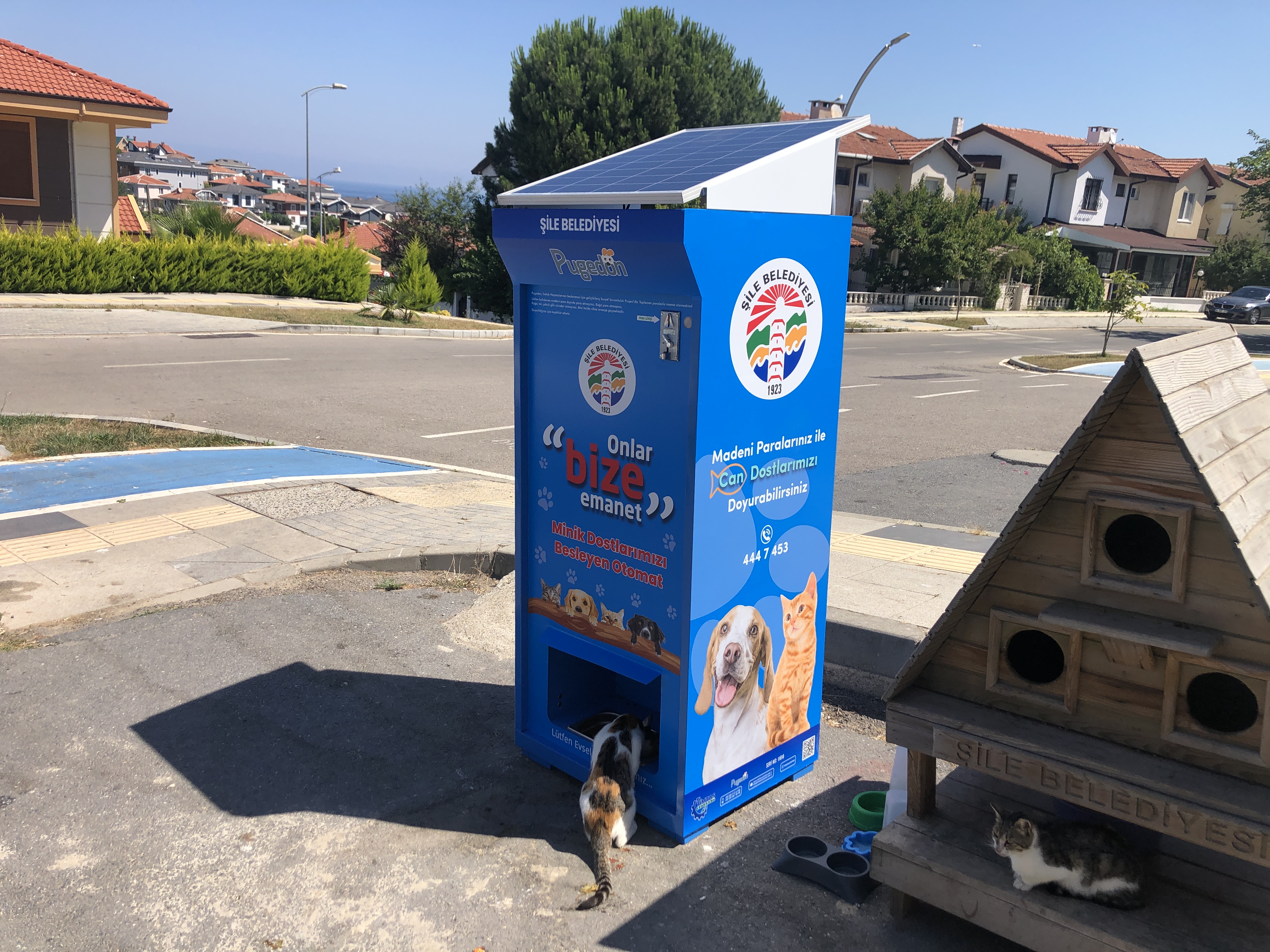 Şile Belediyesi’ nce sahipsiz sokak hayvanları için kullanılacak olan mama otomatları Pugedon MamaMatik’ ler Timtaş AŞ tarafından üretilerek can dostlarımızın hizmetine sunuldu.