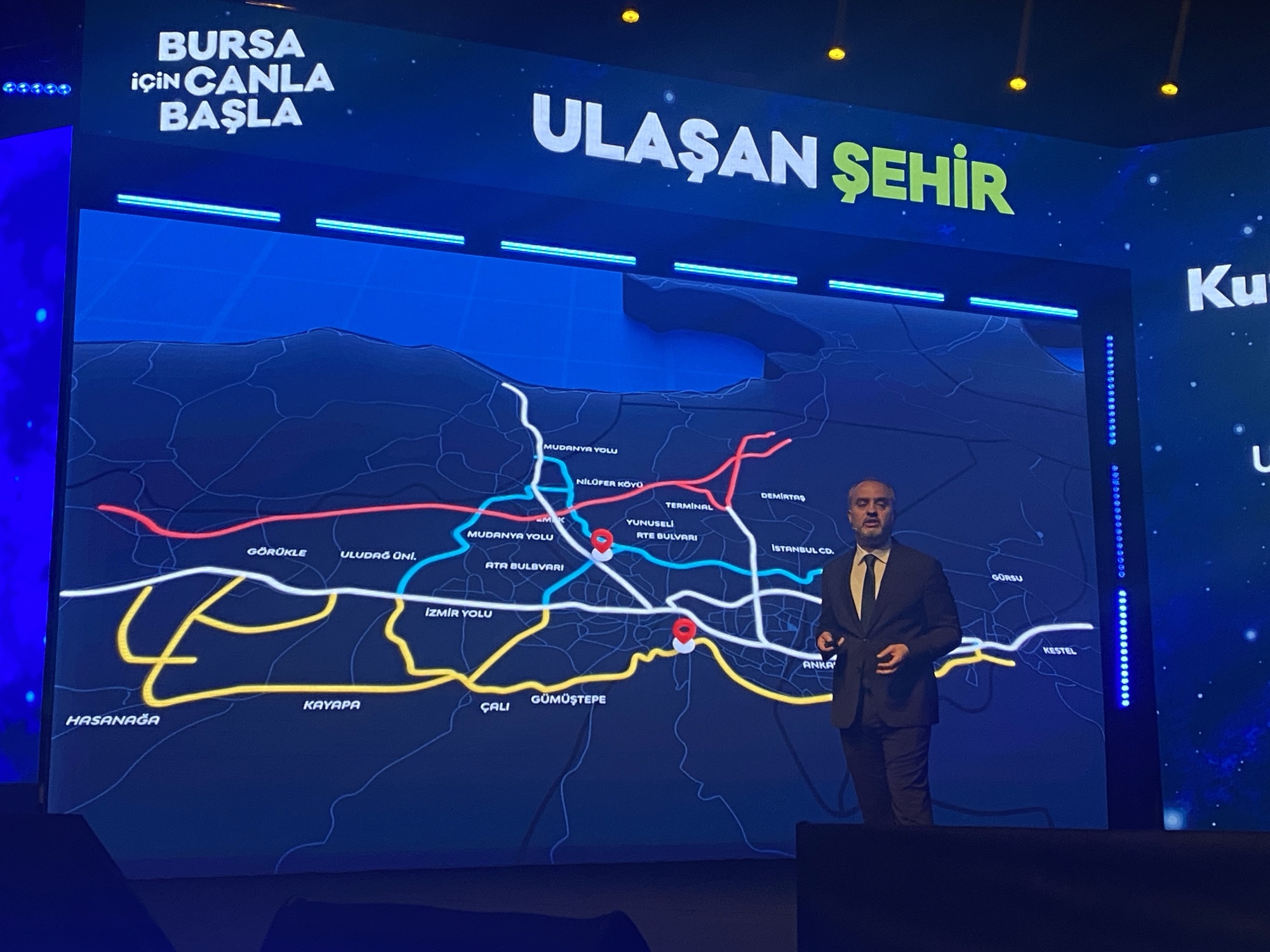 Lansmanda konuşan Bursa Büyükşehir Belediye başkanı Alinur Aktaş, "Ulaşımda devrim niteliğinde yatırımların müjdesini verdi. Akıllı çözümler, yeni raylı sistemler ve toplu taşıma araçlarıyla Bursa'nın ulaşımını modern ve konforlu hale getireceklerini açıkladı.