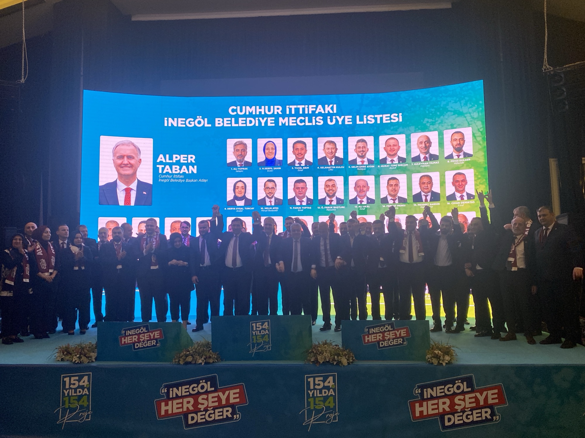 İnegöl Belediye Başkanı ve Cumhur İttifakı adayı Alper Taban, düzenlediği lansman programında yeni dönem projelerini açıkladı. 154. Yılda 154 proje sloganıyla toplantıya başlayan Taban;