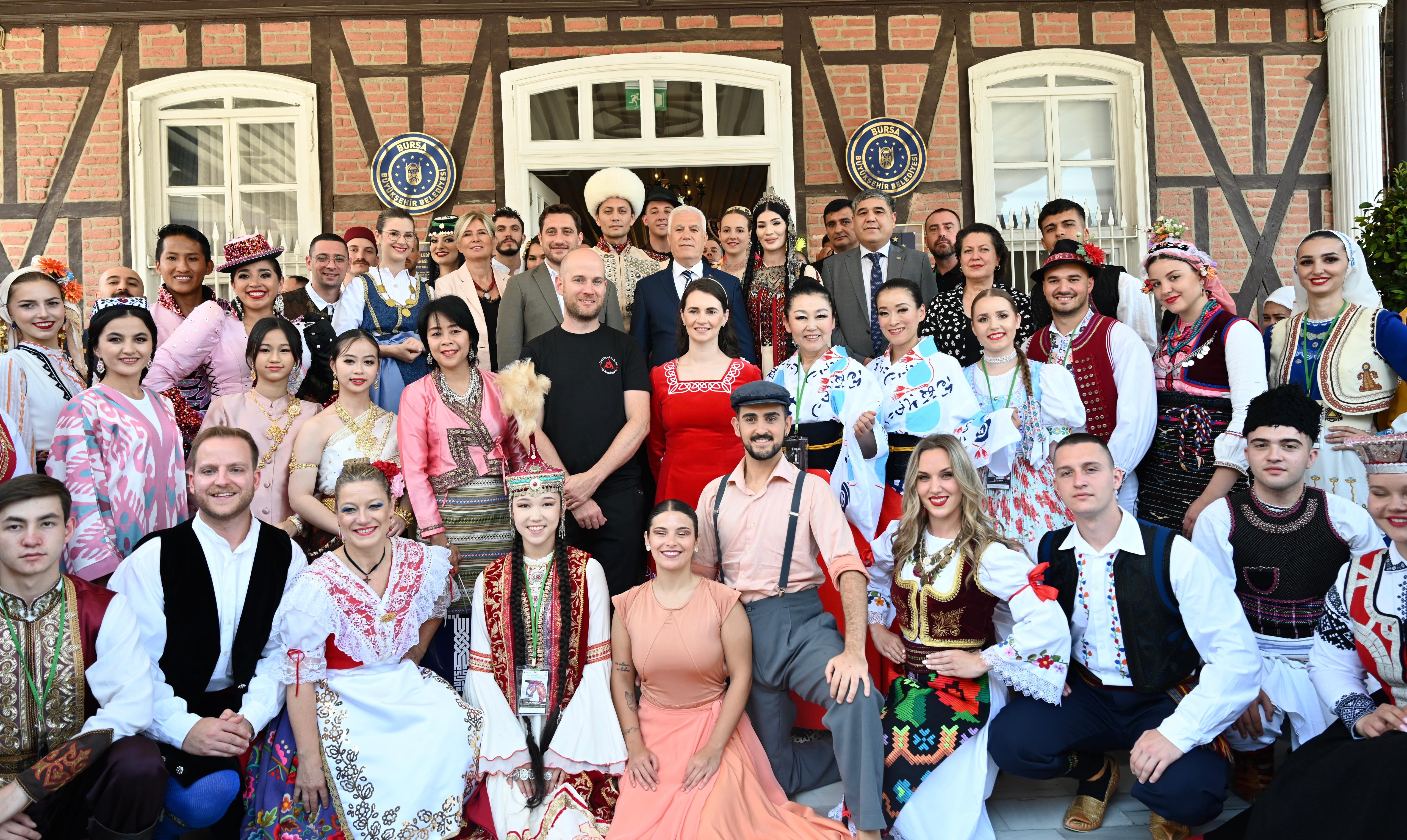 Bursa Büyükşehir Belediyesi tarafından bu yıl 36’ncısı düzenlenen Altın Karagöz Halk Dansları Yarışması’na katılan ekiplerin temsilcileri, Başkan Mustafa Bozbey’i ziyaret ederek ülkelerinin sembol hediyelerini sundu.