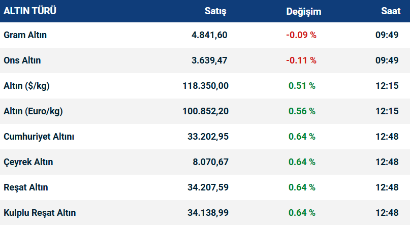 Gram altın, güne 4.840 liradan giriş yaptı. Gün içinde 4.820 lira seviyesine kadar gerilerken, en yüksek 4.850 lirayı gördü. Şu an 4.847 liradan alıcı buluyor.