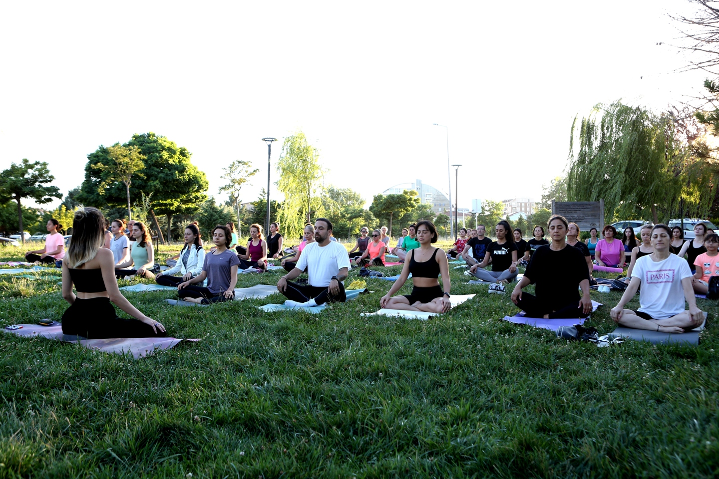 Yoga eğitmenleri Ali Hürcan, Halit Çetintaş ve Nihan Yıldırım’ın eşliğinde yürütülen çalışmalara katılan vatandaşlar Hatha yoga egzersizleri yaparak vücudu esnetme, nefes teknikleri ve nefes-eklem egzersizleriyle beden dinginliğini yakalamaya çalışıyor.