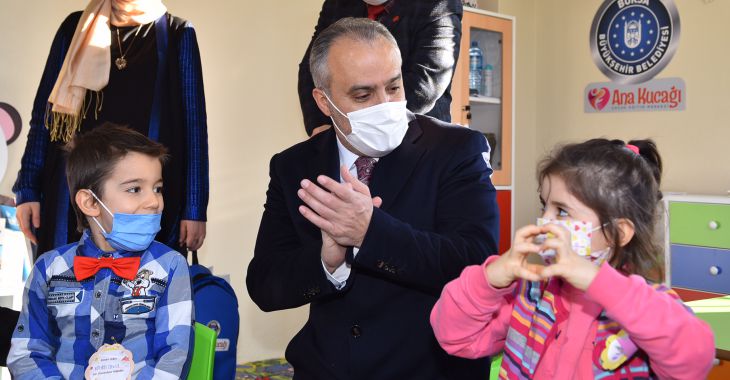Her merkezde yemekhane bulunduğunu, sabahları kahvaltı, öğle gruplarına ise ikindi öğünün ücretsiz olarak verildiğini hatırlatan Başkan Aktaş, çocukların çanta, kırtasiye ve eğitim seti ihtilaçlarının da Büyükşehir tarafından karşılandığını vurguladı. Korona virüs tedbirleri kapsamında tüm merkezde gerekli önlemlerin alındığını ifade eden Başkan Aktaş, “20 kişilik sınırlarda mevcudu 15’e, 15 kişilik sınıflarda 10’a düşürdük. Maske, mesafe ve hijyen konusunda gerekli duyarlılığı gösteriyoruz. Milli Eğitim müfredatının yanında burada ‘Şehrim Bursa’ adlı kültürel modeli uyguluyoruz. Bunun yanında çocuklarımıza değerler eğitimi veriyoruz. Vatan Ana Kucağımızın hem çocuklarımıza hem de Vatan Mahallemize hayırlı olmasını diliyorum” dedi.