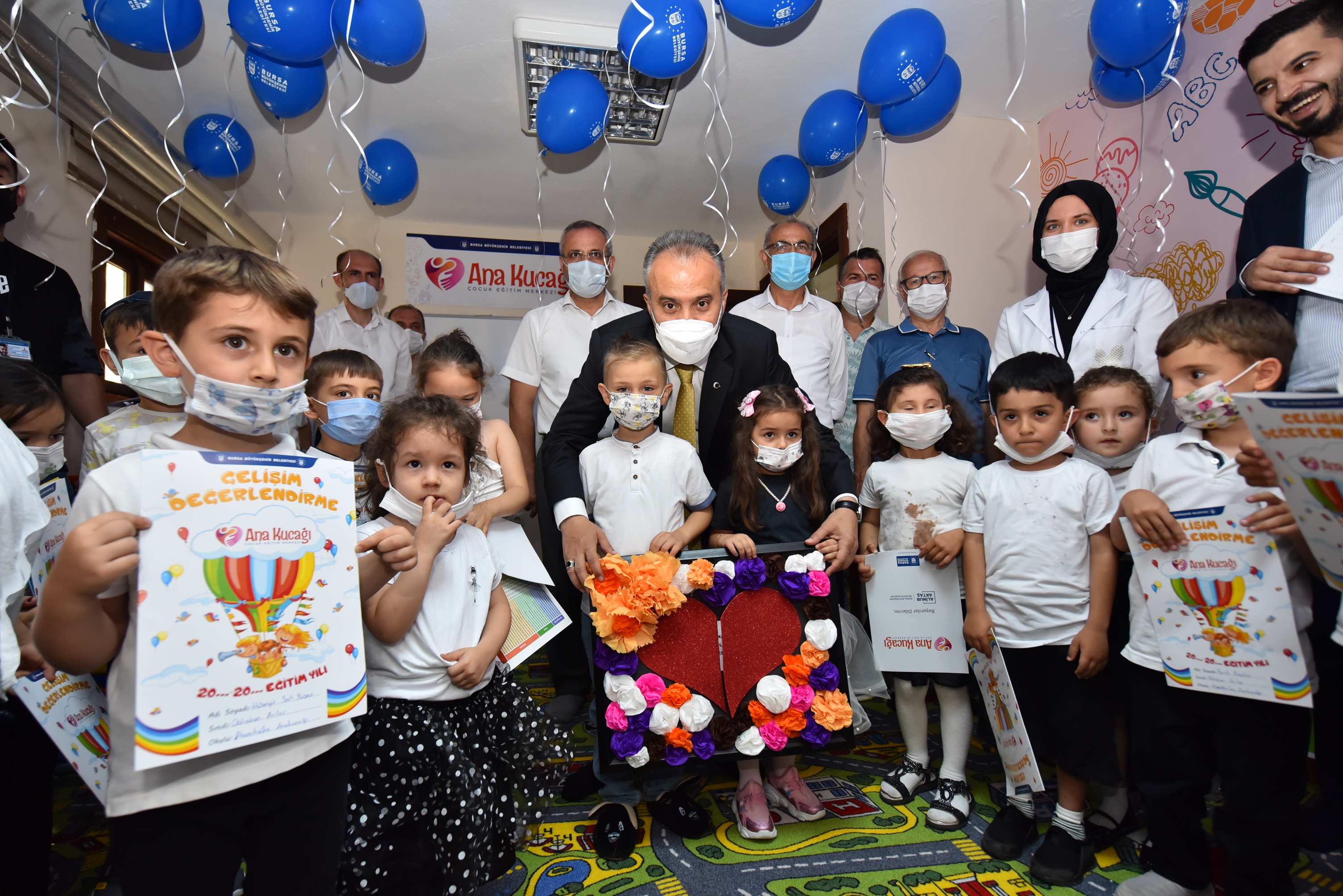 Bursa Büyükşehir Belediyesi’nin toplumun her kesiminin okul öncesi eğitim hizmetlerinden faydalanabilmesi amacıyla hizmete aldığı Ana Kucağı Eğitim Merkezlerinde 1000’i aşkın çocuk karne heyecanı yaşadı. Alacahırka Ana Kucağı Eğitim Merkezi’ndeki minikler hazırladıkları gösteriyle büyük alkış alırken, karneleri de Büyükşehir Belediye Başkanı Alinur Aktaş’ın elinden aldı.