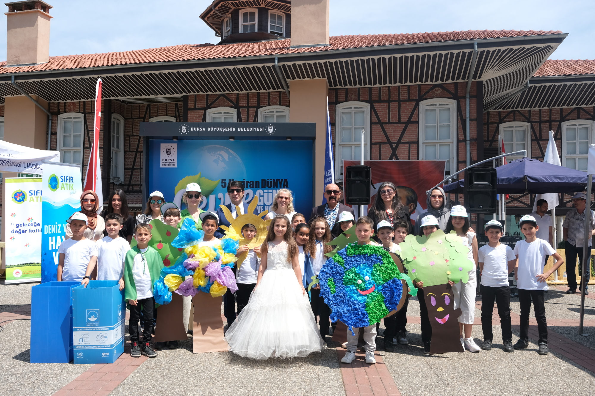 Bursa’yı daha sağlıklı geleceğe taşımak amacıyla kanalizasyon ve yağmur suyu hatlarının yenilenmesi, arıtma tesisleri, dere ıslahı ve kente yeni yeşil alanlar kazandırılması gibi pek çok projeyi hizmete alan Büyükşehir Belediyesi, çevre konusunda toplumsal duyarlılık oluşturmak için bir dizi etkinliklere imza atıyor. Bu kapsamda 5 Haziran Dünya Çevre Günü’nü bir haftalık etkinliklerle kutlayan Büyükşehir Belediyesi, Heykel’deki tarihi belediye binası önündeki UNESCO Meydanı’nda örnek çalışmaya imza attı. Büyükşehir Belediyesi Çevre Koruma ve Kontrol Dairesi Başkanlığı koordinasyonunda, tüm daire başkanlıkları ile belediye iştiraklerinin katılımıyla yapılan etkinlikte atık malzemeler, çeşitli uygulamalarla geri kazanıldı. Açılan stantlarda vatandaşlara saksılarda çiçek dağıtılırken, BUSMEK standında atık olarak değerlendirilen ürünlerin nasıl yeni bir eşyaya dönüştüğü gözler önüne serildi. Çocukların atık malzemelerden yaptıkları ürünler dikkat çekerken, etkinliğe Bursa Büyükşehir Belediyesi Başkanvekili Fethi Yıldız ile Genel Sekreter Yardımcısı Ahmet Aka da katıldı.