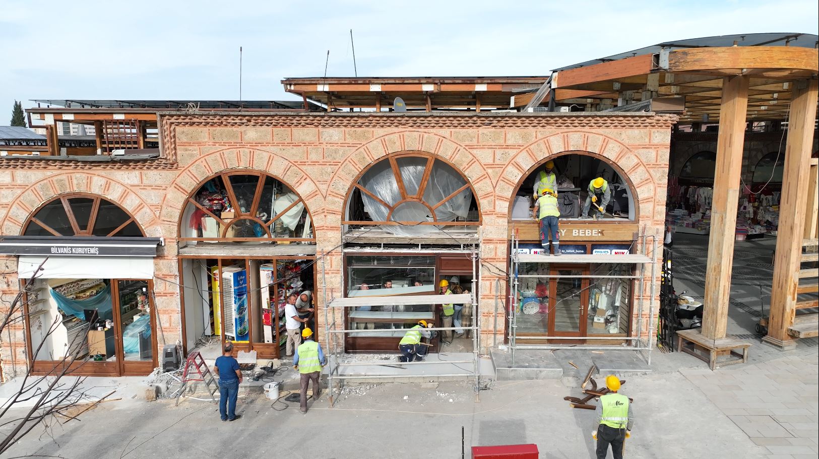 Bursa’nın kalbi olan Tarihi Çarşı ve Hanlar Bölgesi’nde 38 binayı yıkıp yılların hayalini gerçekleştiren, restorasyonla Sağrıcı Sungur Mescidini gün yüzüne çıkaran Büyükşehir Belediyesi, artık daha görünür hale gelen tarihi hanlarda da restorasyon çalışmalarını hızla sürdürüyor. Tarihi Bakırcılar Çarşı’nda başlatılan çalışma kapsamında, tarihi yapı cepheden çatıya kadar özgün kimliğine kavuşuyor.