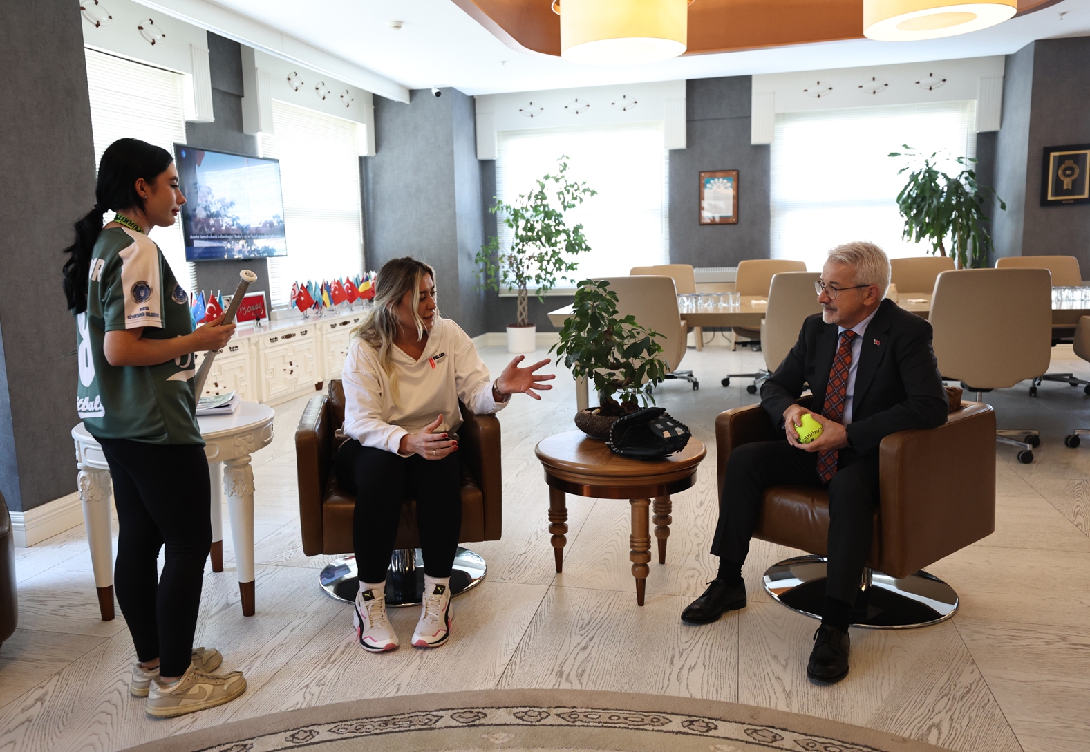 Bocce (Volo) Büyük Kadınlar Dünya Şampiyonası’nda başarılı olan sporcular ile Softbol Türkiye Şampiyonu Akçalar Spor Kulübü Softball +16 Büyük Bayanlar Takımı, Nilüfer Belediye Başkanı Turgay Erdem’i ziyaret ederek, başarılarını paylaştı.