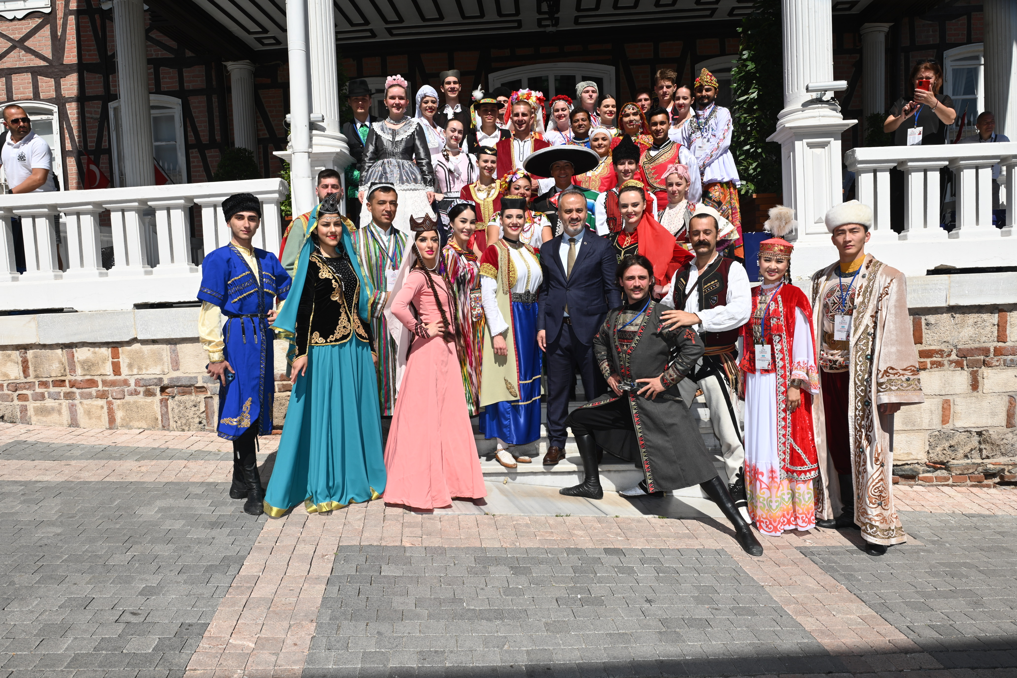 Bursa Büyükşehir Belediyesi tarafından bu yıl 34’üncüsü gerçekleştirilen Altın Karagöz Halk Dansları Yarışması’na katılan ekiplerin temsilcileri Başkan Alinur Aktaş’ı ziyaret ederek, ülkelerinin sembol hediyelerini sundu.