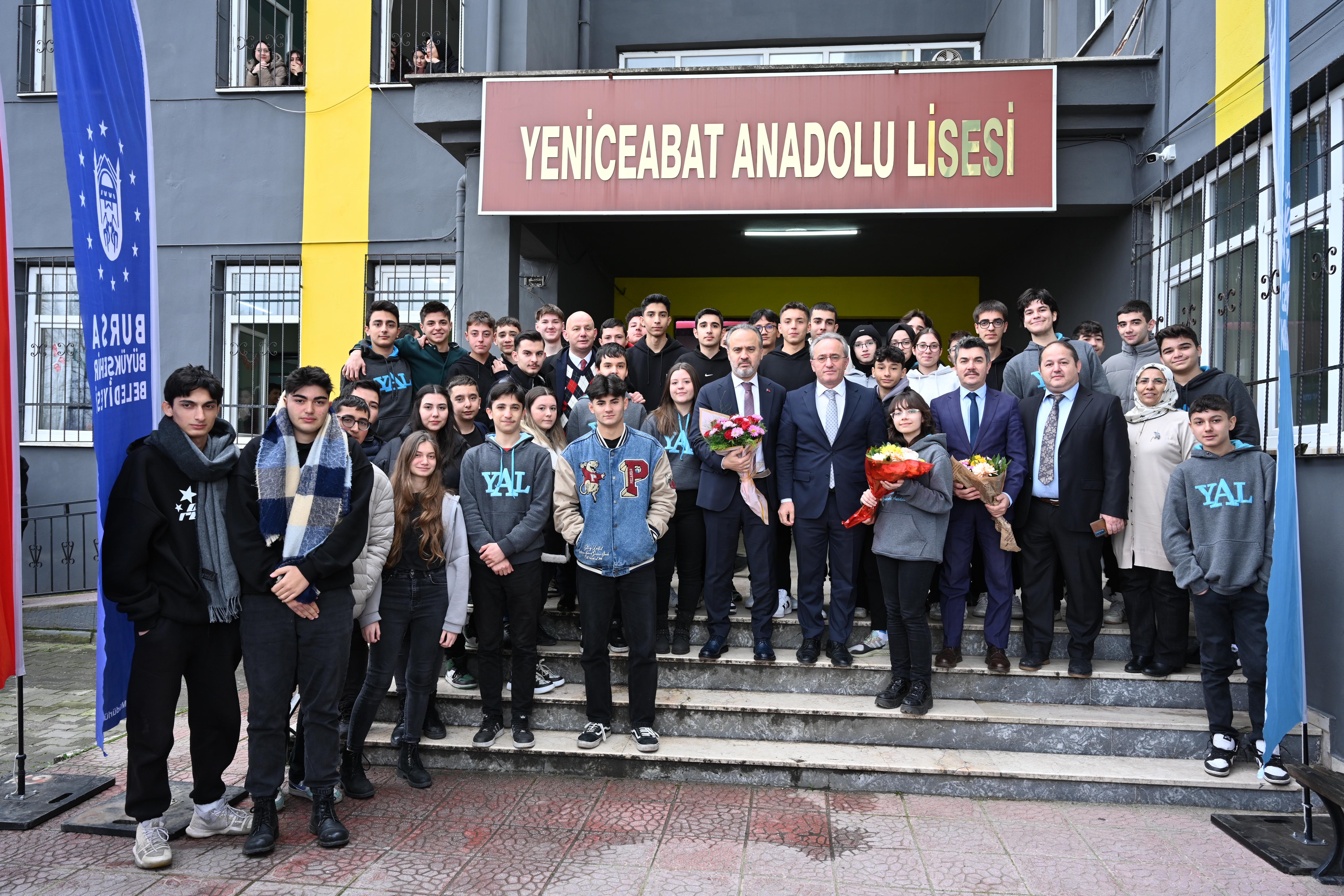 Yoğun programına rağmen sık sık eğitim kurumlarını gezip, öğrencilerle bir araya gelen Bursa Büyükşehir Belediye Başkanı Alinur Aktaş’ın yeni durağı, Yeniceabat Anadolu Lisesi oldu. Yeniceabat Anadolu Lisesi konferans salonunda gerçekleşen programa Bursa Büyükşehir Belediye Başkanı Alinur Aktaş, Bursa İl Milli Eğitim Müdürü Dr. Ahmet Alireisoğlu, Osmangazi İlçe Milli Eğitim Müdürü Metin Sezer, Yeniceabat Anadolu Lisesi Okul Müdürü Rüştü Kır ile okul öğretmenleri ve öğrenciler katıldı.