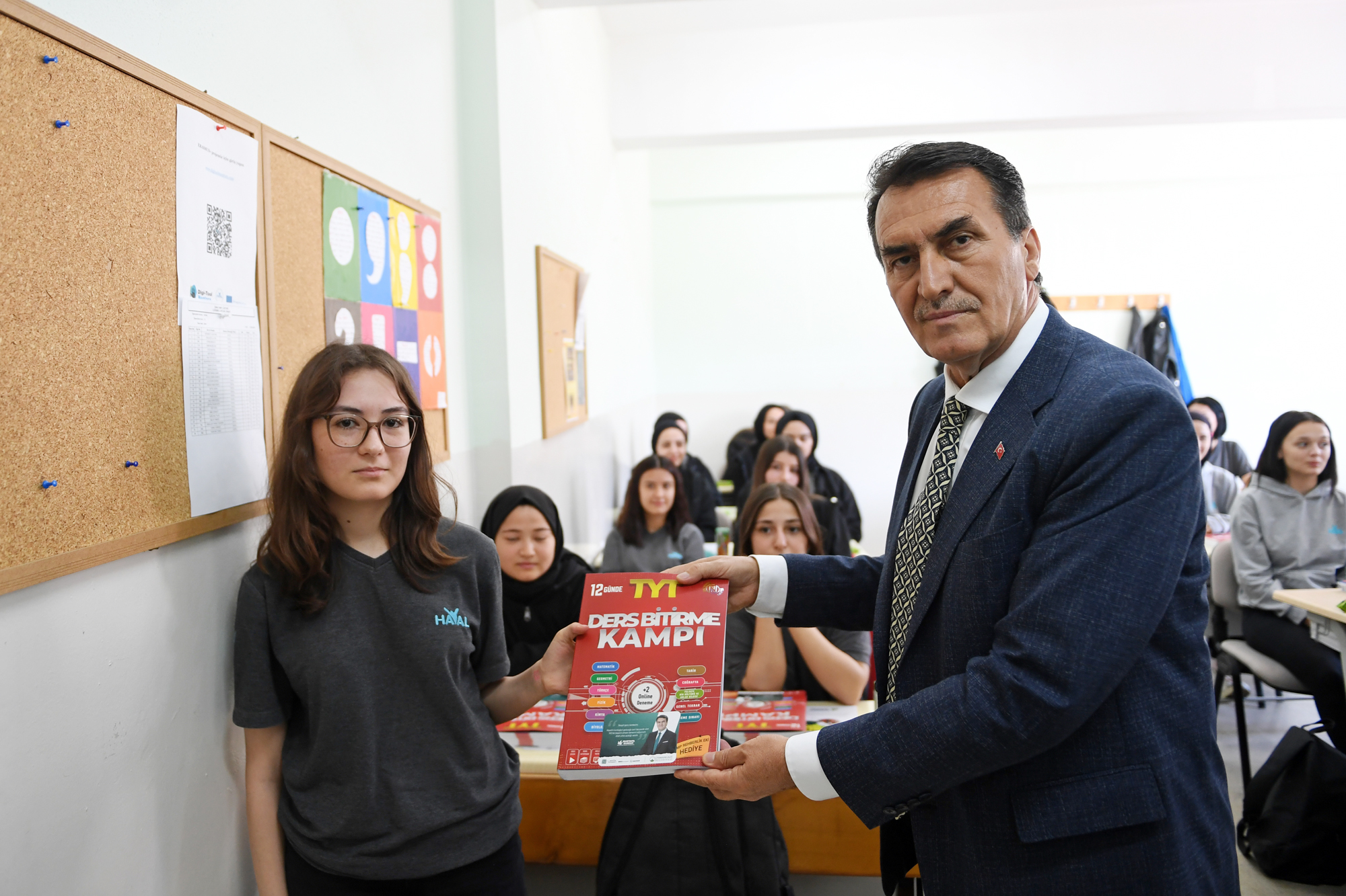 TYT ve AYT Ders Bitirme Kampı formatında hazırlanan kitap setlerini Hasan Ali Yücel Anadolu Lisesi’nde öğrencilere dağıtan Başkan Dündar, “Destek bizden, başarı sizden” mesajı verdi. Osmangazi Kaymakamı Ali Partal ile birlikte öğrenci ve öğretmenler ile bir araya gelen Başkan Dündar, lise öğrencilerinin geleceğini şekillendirecek sınavlar öncesinde katkı sağlamaya çalıştıklarını söyledi.