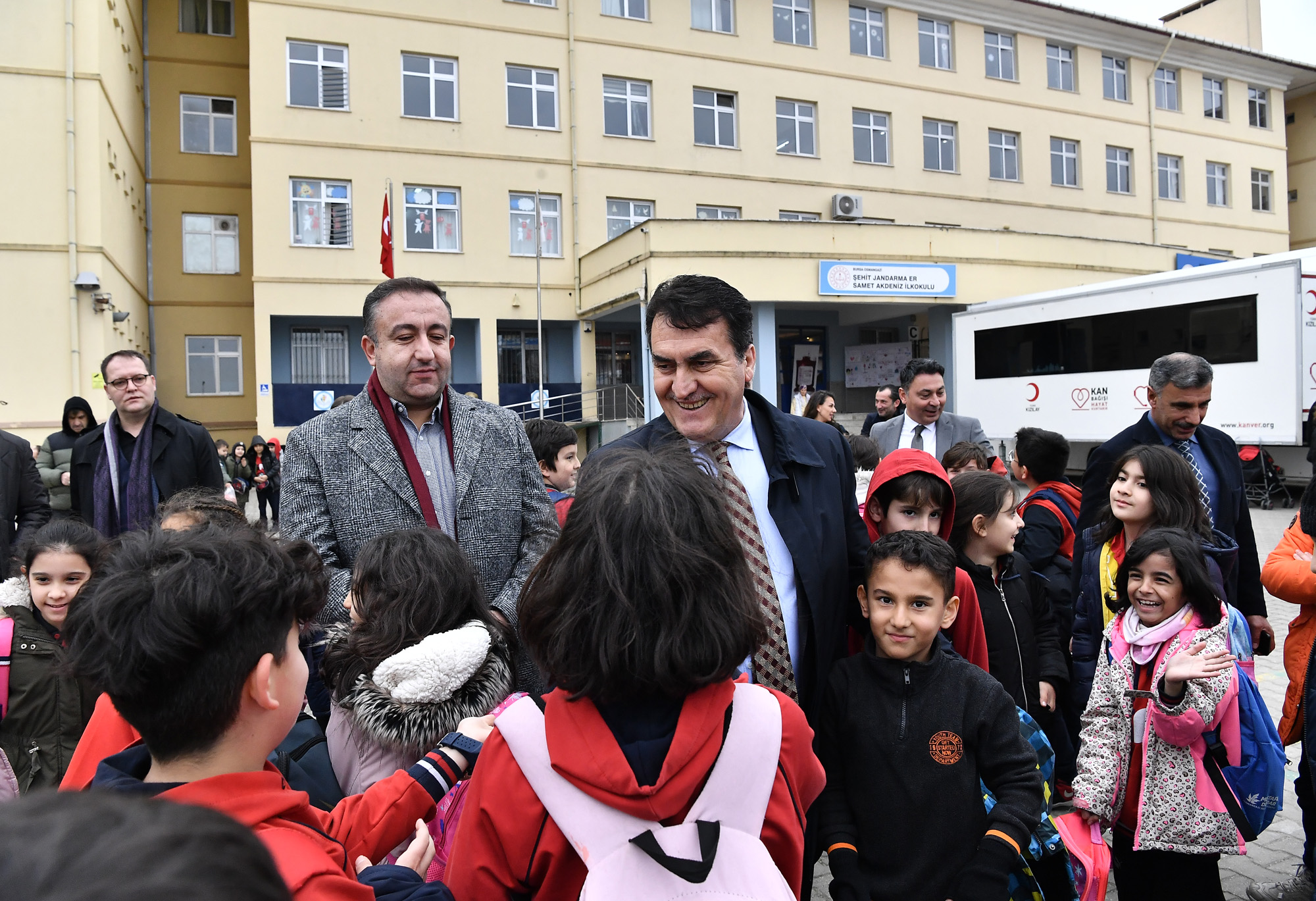 Osmangazi Belediye Başkanı Mustafa Dündar'ın, Şehit Jandarma Er Samet Akdeniz İlkokulu ziyareti renkli görüntülere sahne oldu. Kendisini sevgi gösterileri ve çiçekler ile karşılayan öğrencilerle eğlenceli dakikalar geçiren Başkan Dündar, okul bahçesinde Kızılay tarafından düzenlenen kan bağısı kampanyasına da destek verdi.