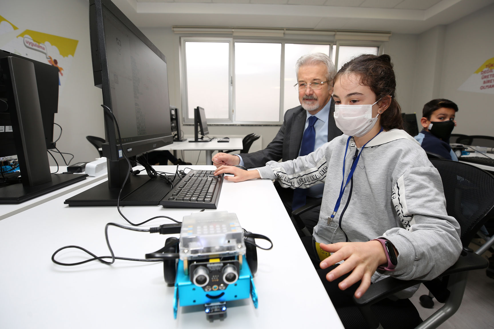 Nilüfer Belediyesi Dr. Hüseyin Parkan Sanlıkol Müzik Enstrümanları Müzesi’nde gerçekleştirilen “Geri Dönüşen Notalar” ile Karaman Dernekler Yerleşkesi’ndeki “Kodlama Atölyesi”ne katılan Başkan Turgay Erdem, çocuklarla birlikte vakit geçirdi. Müzik Enstrümanları Müzesi’nde çocuklarla birlikte geri dönüşüm malzemeden enstrüman yapan Başkan Turgay Erdem, robotik kodlama atölyesinde de çocukların yaptığı işleri ilgiyle izledi.