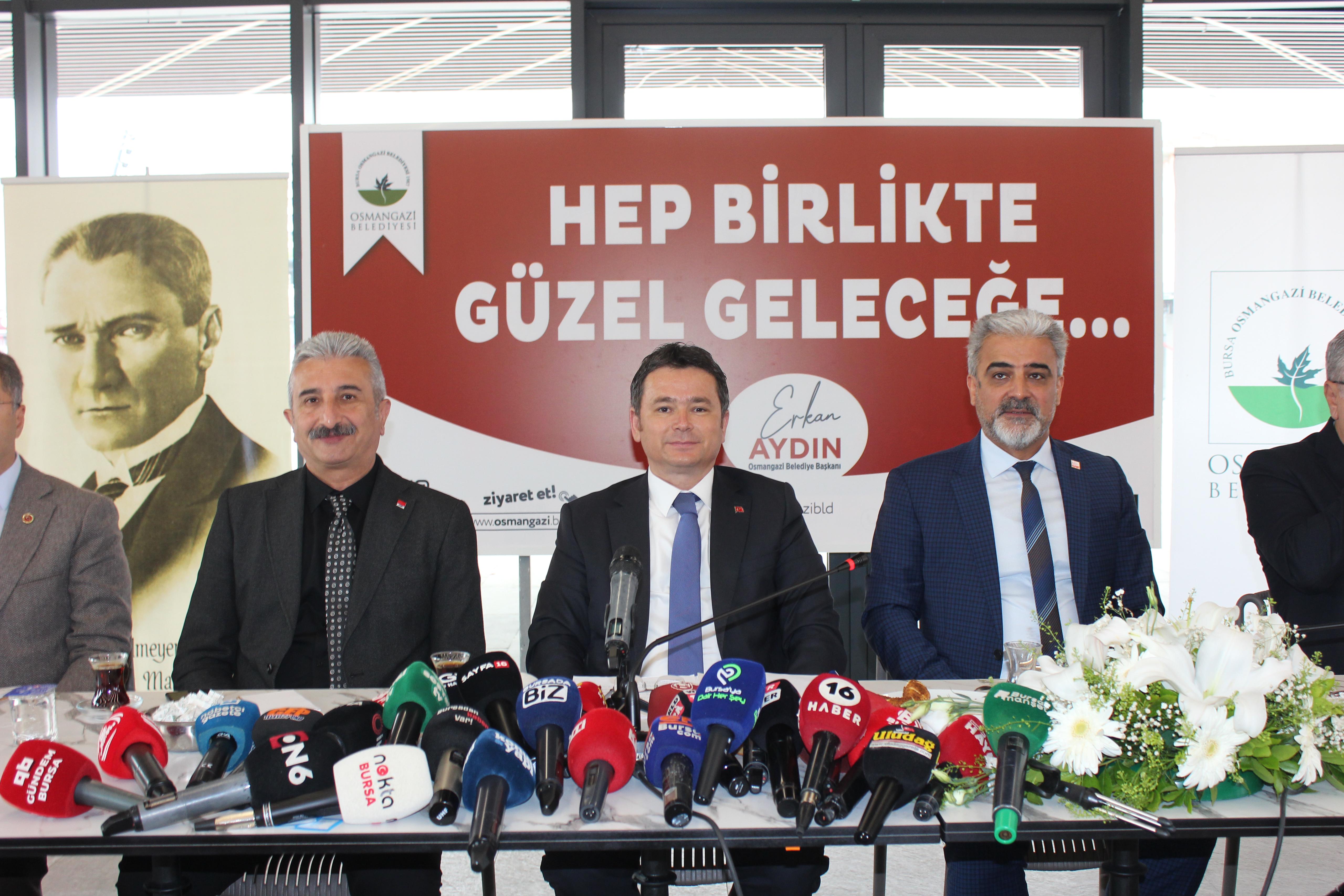 Osmangazi Belediye Başkanı Erkan Aydın 31 Mart Yerel Seçimleri’nden sonra ilk kez basın mensuplarıyla bir araya geldi. Osmangazi Meydanı’nda yapılan toplantıya Osmangazi Belediye Başkanı Erkan Aydın, CHP İl Başkanı Nihat Yeşiltaş, CHP Osmangazi İlçe Başkanı Cengiz Çelikten ve basın mensupları katılım sağladı.
