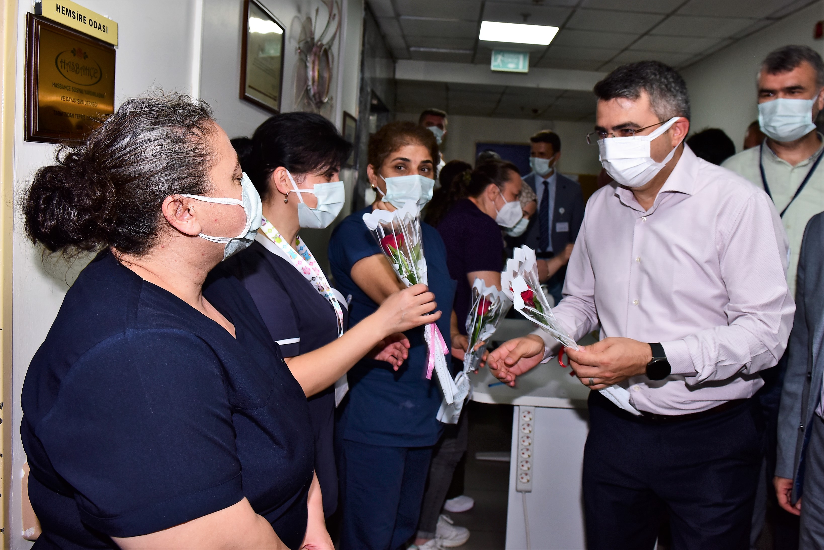 Yıldırım Belediye Başkanı Oktay Yılmaz, Kurban Bayramı’nı dolu dolu geçiriyor. Bayramın ilk günü vatandaşlarla bir araya gelen Başkan Yılmaz, bayramın ikinci günü ise Büyükşehir Belediye Başkanı Alinur Aktaş ve AK Parti Yıldırım İlçe Başkanı Ali Erbay ile birlikte önce Yüksek İhtisas Eğitim ve Araştırma Hastanesi’ni ardından da Kaplıkaya Huzurevini ziyaret etti. Yüksek İhtisas Eğitim ve Araştırma Hastanesi ziyareti kapsamında, Hastane Başhekimi Prof. Dr. Levent Özdemir’le görüşen Başkan Oktay Yılmaz daha sonra sağlık çalışanları ve hastaların bayramını kutladı. Büyükşehir Belediye Başkanı Alinur Aktaş ve AK Parti Yıldırım İlçe Başkanı Ali Erbay ile birlikte sağlık çalışanlarına çiçek hediye eden Başkan Yılmaz, “Bayram, tatil, hafta sonu demeden fedakârca görev yapan sağlık çalışanlarımızı ziyaret edip bayramlarını kutladık. Özellikle, salgın döneminde büyük özveri ile görev yapan tüm sağlık çalışanlarına teşekkür ediyorum. Hastanede tedavi gören hastaları da ziyaret edip, hem acil şifalar diledik hem de bayramlarını tebrik ettik” ifadelerini kullandı.