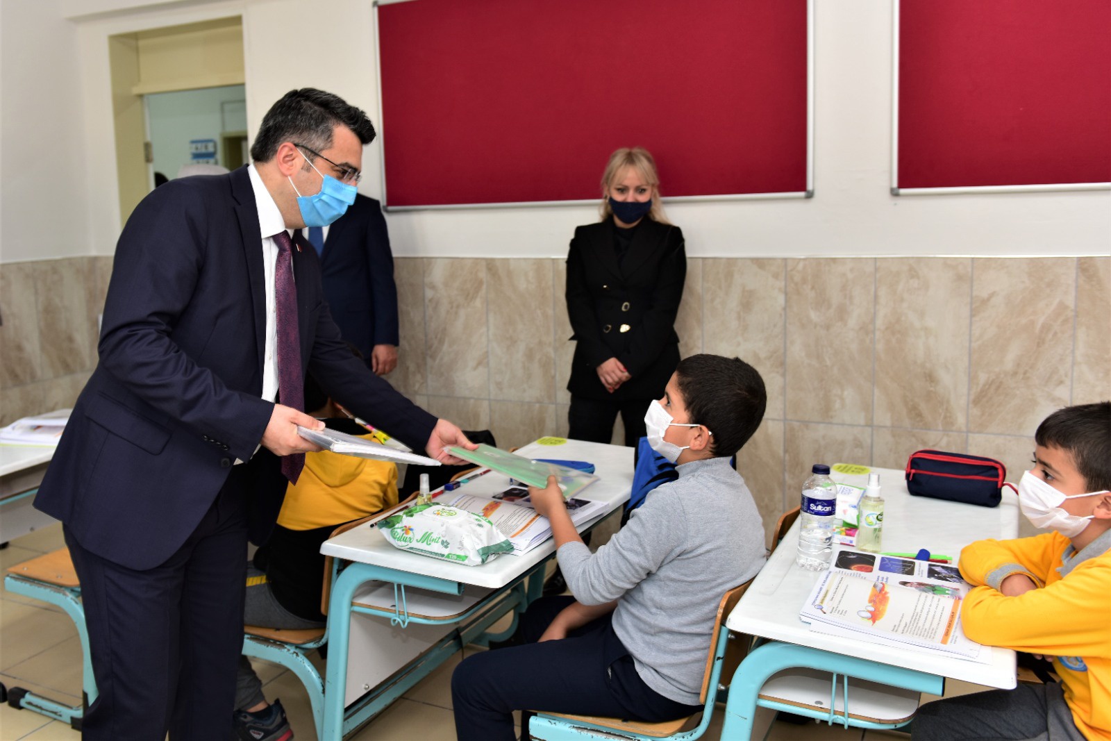 Yıldırım Belediye Başkanı Oktay Yılmaz, öğrencilere maske mesafe ve hijyen konularında tavsiyelerde bulunarak, derslerinde başarılar diledi.