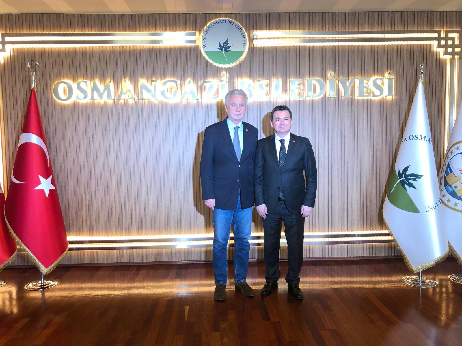 Bursa Osmangazi Belediye Başkanı Erkan Aydın'ı makamında ziyaret eden Litvanya Cumhuriyeti Fahri Konsolosu Berat Tunakan, yeni görevinde başarılar diledi ve dostluk mesajları iletti. Buluşmada, Osmangazi'nin Türkiye'nin 3. büyük ilçesi olması ve Litvanya Cumhuriyeti arasındaki ilişkilerin geliştirilmesi için iş birliği konuları ele alındı.