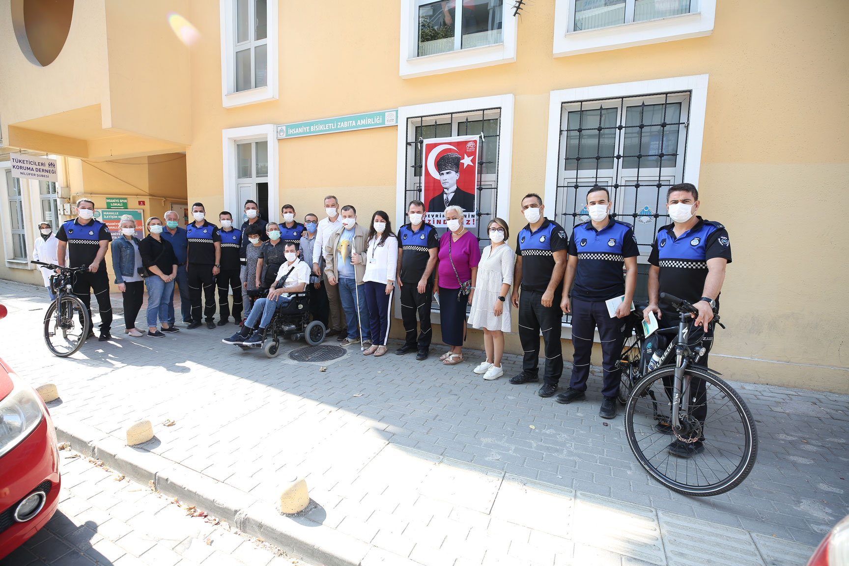 Nilüfer Belediyesi Bizim Ev Engelliler Sosyal Yaşam Destek Merkezi katılımcıları, Zabıta Haftası kapsamında Nilüfer Belediyesi Bisikletli Zabıta Ekibi’ni ziyaret ederek özel günlerini kutladı. Bizim Ev katılımcıları, kent içinde engelsiz ulaşıma destek oldukları için ekiplere teşekkür etti.