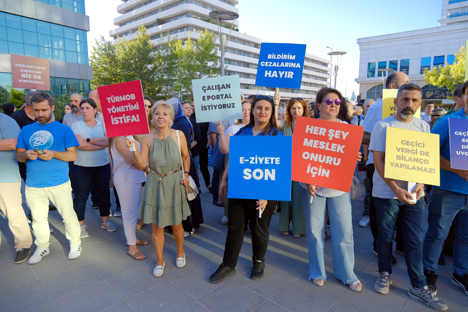 BAOB Özgürlük ve Demokrasi Meydanı’nda Oda kurul üyeleri ve meslek mensuplarının yoğun katılımıyla gerçekleşen basın açıklaması metnini okuyan BSMMMO Başkanı Hüseyin Halil, “Meslek mensupları olarak; ağır iş yükü altında ezildiğimiz, enflasyon muhasebesi ile birlikte omuzlarımızdaki yükün artık dayanılmaz bir seviyeye geldiği noktadan sesleniyoruz” diyerek başladığı konuşmasını şöyle sürdürdü: “Mali müşavirler ve muhasebe mesleği uzun süredir yangın yerine dönmüş, geldiğimiz son noktada insanca çalışma ve yaşama şartları maalesef tamamen ortadan kalkmıştır. Oysa; dünyanın en yüksek enflasyon oranlarından birinin oluşmasına sebep olan ne mali müşavirlerdir ne de vergi mükellefleridir. Tüm sorumluluk, ülkeyi yöneten siyasi otoriteye aittir. Bu yüksek enflasyonun sonuçlarının katlanıcısı da ne vergi mükellefleri ne de mali müşavirler olmamalıdır! Siyasi otoritenin hatalı politikaları tek nedendir. Nitekim siyasi otorite politikasını değiştirmiştir. Hazine ve Maliye Bakanlığı’nın sistemleri, uzun zamandır düzenli çalışmamaktadır. Geçici vergi dönemlerinde doğru bilanço yapmanın ve doğru vergi hesaplanmasının imkanı yoktur. Döneminde yapılmayan bilançonun da kimseye faydası olmayacaktır. Vergi mükelleflerinin doğru bilanço bilgileri yalnızca vergi hesaplaması için değildir.”