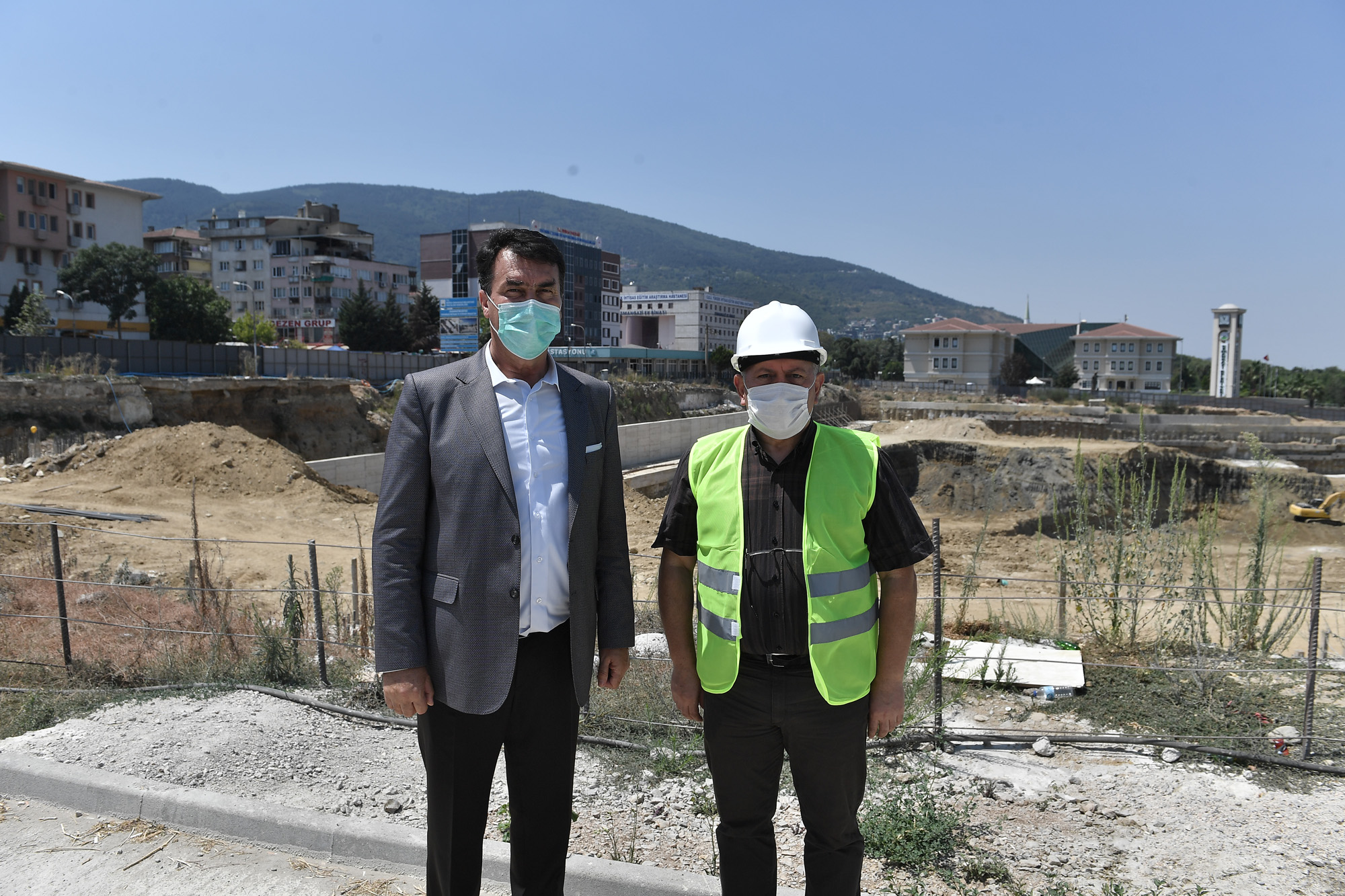Osmangazi Belediyesi olarak ihtiyaç duyulan 31 farklı noktada şantiyelerde çalışmaların sürdüğünü açıklayan Başkan Mustafa Dündar, “Bu şantiyelerin en büyüğü ise Osmangazi Meydanı. Meydan inşaatında çalışmalarımız tüm hızıyla devam ediyor. 631 fore kazık çakıldı. Ankreaj ve hafriyat çalışmalarımız devam ediyor. Adım adım zemine kadar indik ve yakında ilk çimentonun dökümüne başlayacağız. İnşaat, planlandığı şekilde gidiyor ve zamanında bitirilecek.” diye konuştu.