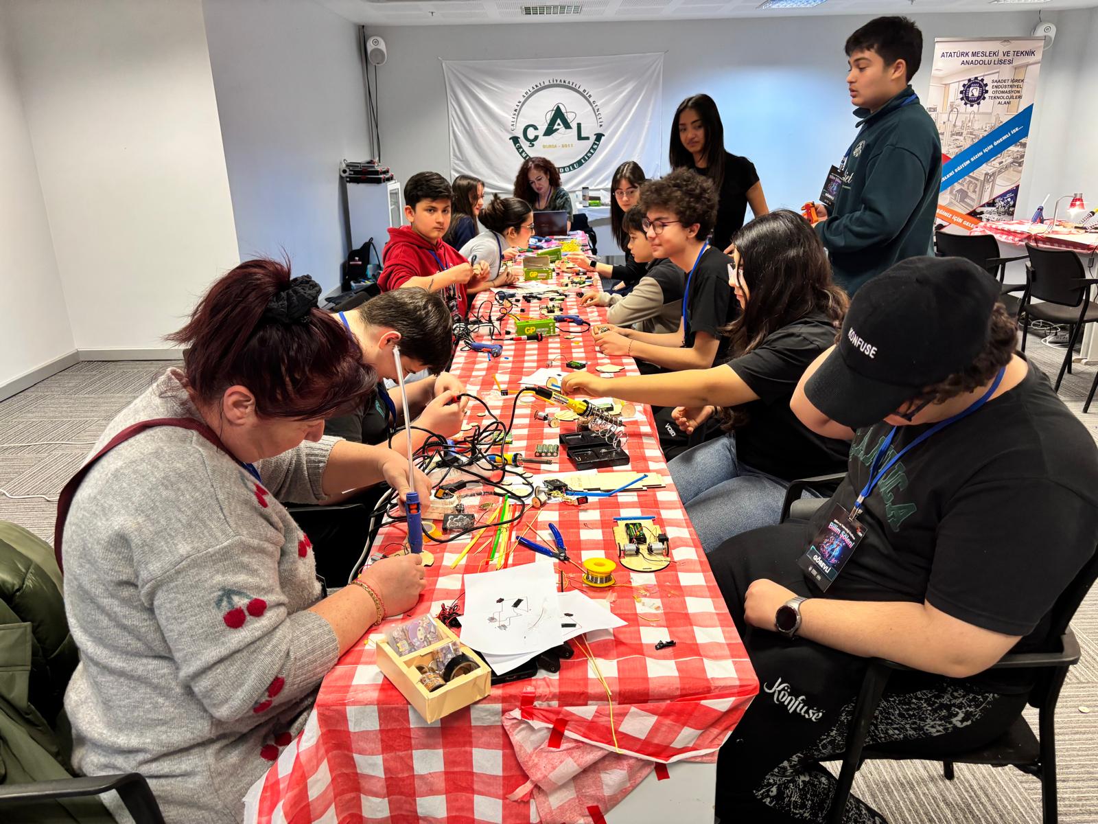 Atatürk Kültür Merkezi Merinos Yerleşkesi’nde gerçekleştirilen etkinlik, adeta festival atmosferinde geçti. 8–14 Mart Bilim ve Teknoloji Haftası kapsamında ikinci kez düzenlenen şölen, bilim ve teknolojiye ilgi duyan çocuklar ile gençlerden yoğun ilgi gördü.