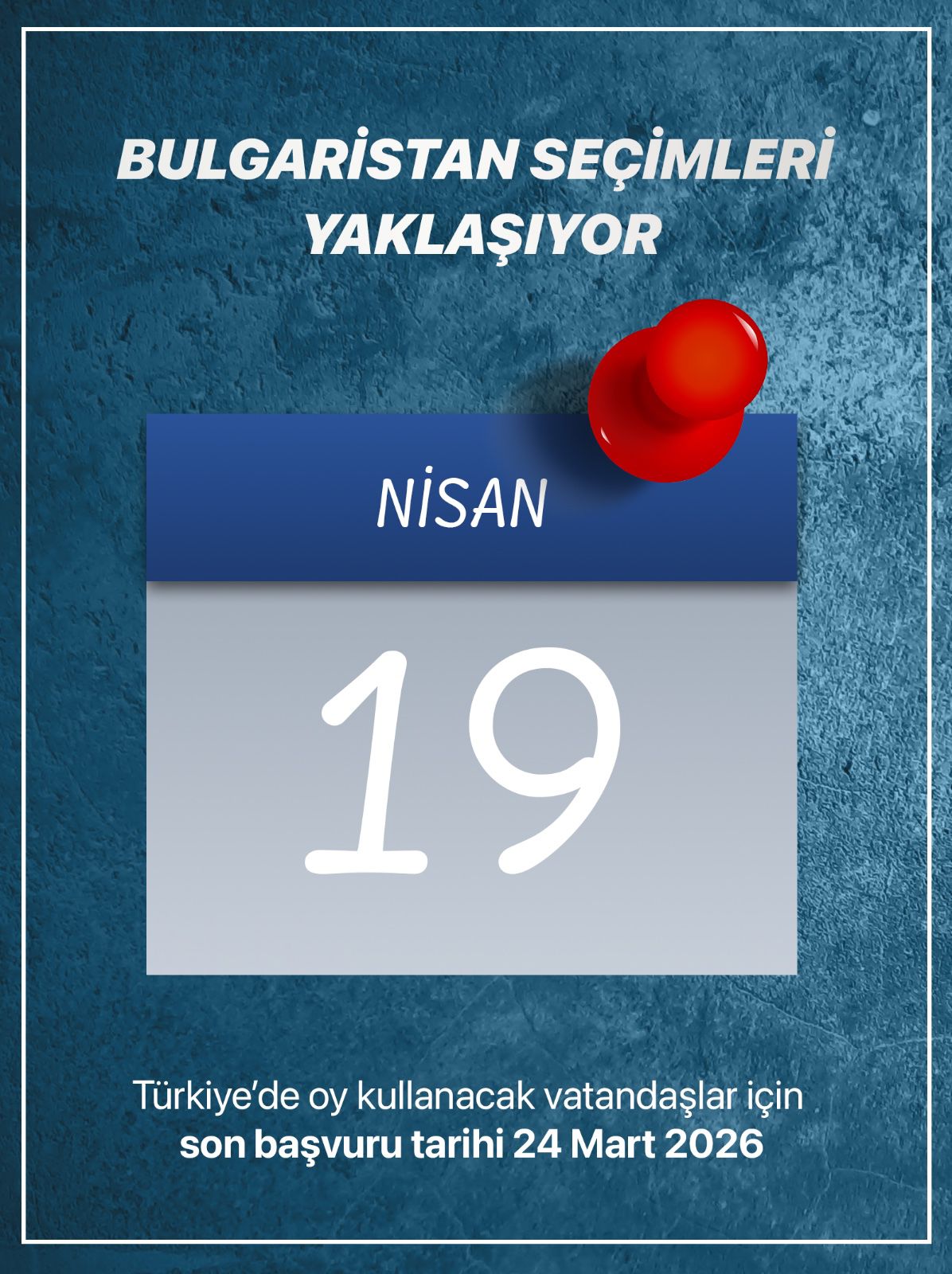 Yurt dışında oy kullanmak isteyen seçmenlerin, başvurularını Bulgaristan Merkez Seçim Komisyonu’nun resmi internet sitesi üzerinden en geç 24 Mart tarihine kadar tamamlaması gerekiyor.