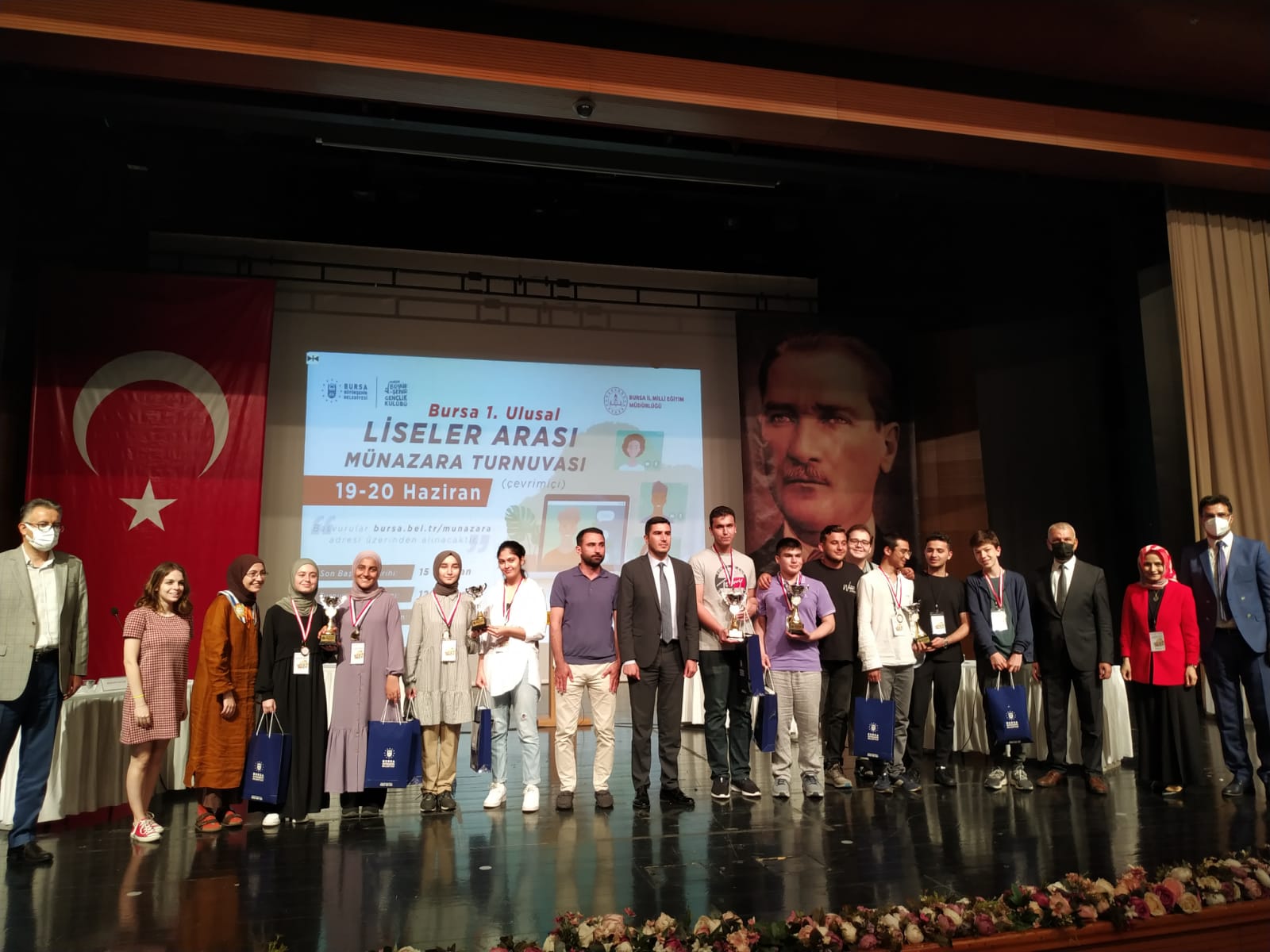 Geçen yıl salgın nedeniyle ertelenen münazara yarışması bu yıl “Bursa 1. Ulusal Liselerarası Münazara Turnuvası” adıyla online olarak yapıldı. Turnuvaya 20 farklı şehirden 70 farklı kurum 116 takım 232 öğrenci katıldı.