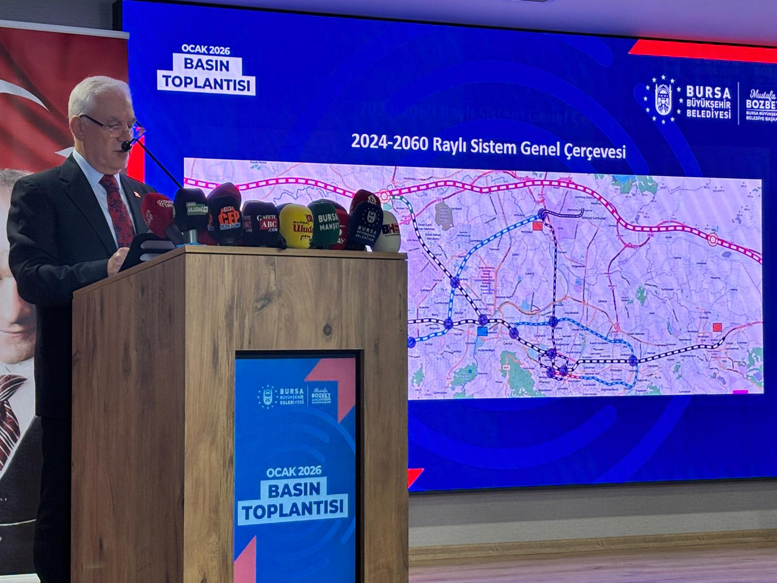 Bursa’daki raylı sistem ağının genişletilmesi ve mevcut hatların daha verimli kullanılması noktasında yürütülen çalışmaları paylaşan Bozbey, raylı sistem yatırımlarının kısa süreli kararlarla değil, bakanlık onaylı ve planlı bir süreçle yönetildiğini hatırlattı. Kızılcıklı-Çalı ve Şehir Hastanesi-Üçevler gibi yeni hatların proje ihalelerinin tamamlandığını ve 2026 yılında bu süreçlerin koordineli şekilde ilerleyeceğini belirten Bozbey, ayrıca nostaljik tramvay hattının (T3) Gökdere ve Mimar Sinan istasyonları ile entegre edilerek daha işlevsel hale getirileceğini söyledi. Toplu taşımada karbon ayak izini azaltmak adına bu tür çevreci yatırımların hayati önem taşıdığını ifade etti. Metro, tramvay ve teleferik gibi sistemlerin şartnamelerinin titizlikle hazırlandığını ve 2050 Ulaşım Ana Planı ile uyumlu hale getirildiğini aktaran Bozbey, geçmiş dönemde dikkate alınmayan planlama eksikliklerini gidererek kentin ulaşım geleceğini sağlam bir hukuki ve teknik zemine oturtmak zorunda olduklarını ifade etti.