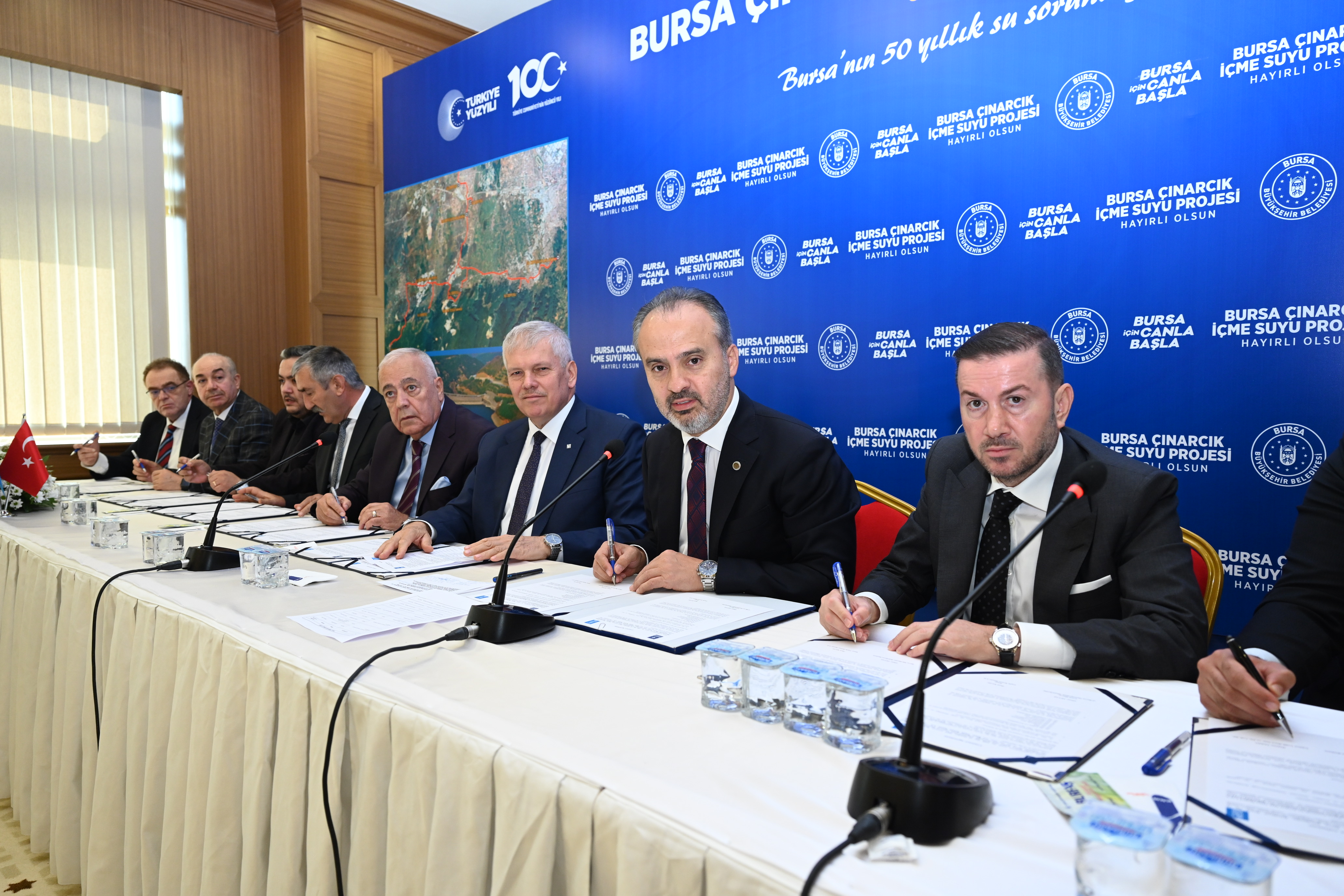 Bursa Büyükşehir Belediyesi, kenti 2060 yılına kadar su sorunu yaşatmayacak önemli bir projeye imza atıyor. 'Bursa Çınarcık İçme Suyu Projesi' olarak adlandırılan bu projenin ihalesini kazanan 9 farklı firma ile sözleşmeler imzalandı. Bursa'yı uzun yıllar boyunca susuzluk tehdidi olmadan sağlıklı içme suyu ile buluşturmayı amaçlayan bu projenin finansmanı için Avrupa İmar ve Kalkınma Bankası (EBRD) ile Fransız Kalkınma Ajansı (AFD) tarafından sağlanan 150 milyon Euro'luk kredi kullanılacak.