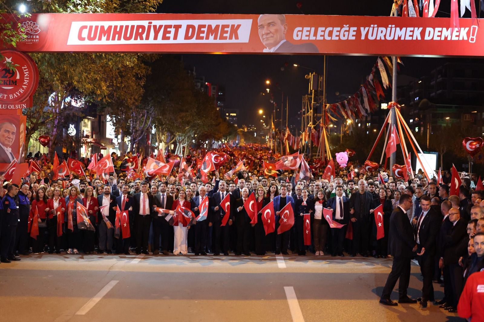 Cumhuriyet’in 102. yıl dönümünü alanlarda kutlamaktan gurur duyduklarını belirten Başkan Mustafa Bozbey, “Ulu Önder Gazi Mustafa Kemal Atatürk ve silah arkadaşları, 102 yıl önce Cumhuriyeti gençlere emanet etti. Bizler de o emanete sahip çıkmaya devam edeceğiz. Yaşasın Cumhuriyet, yaşasın Atatürk, yaşasın tam bağımsız Türkiye” dedi.