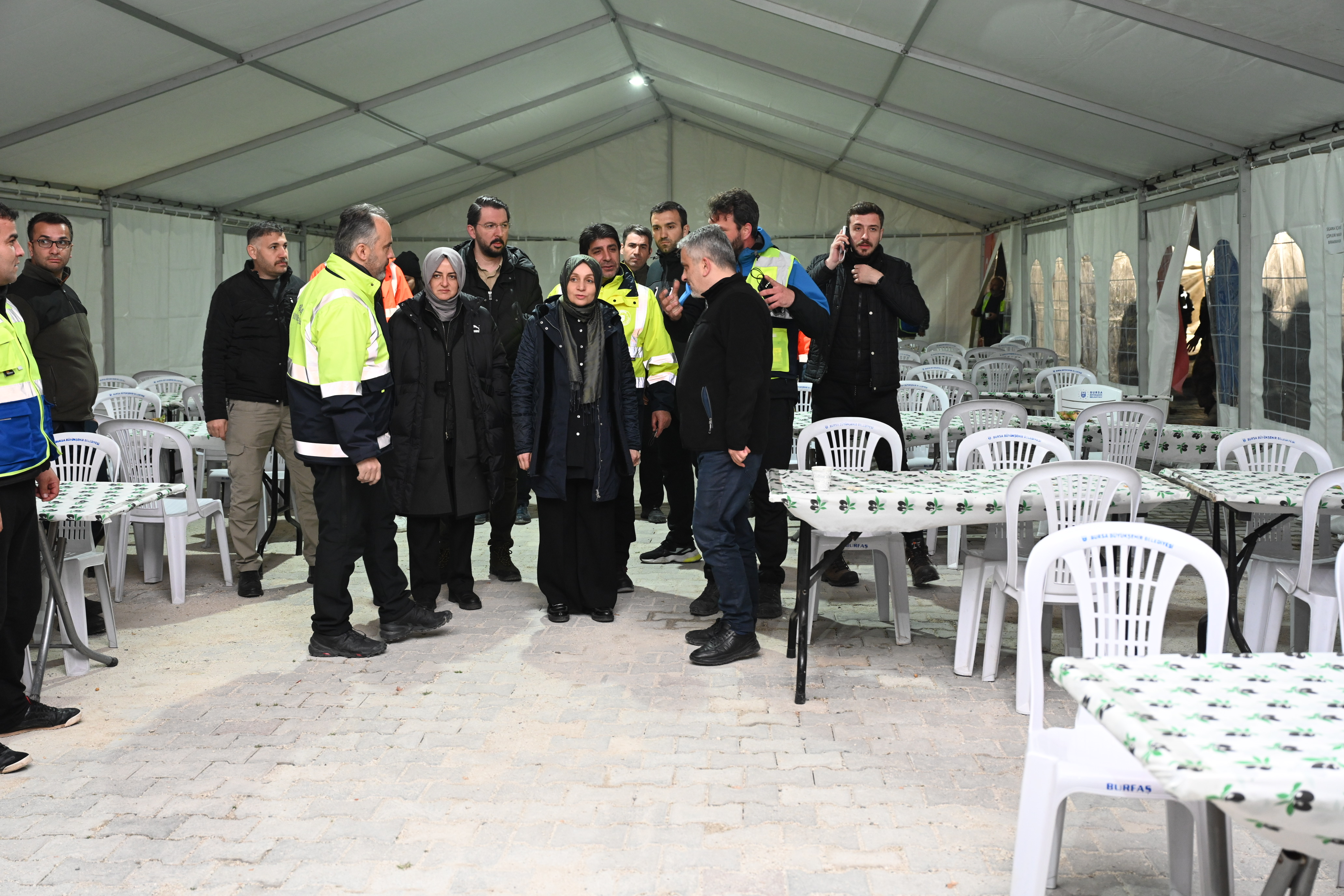 Hatay’da Türkiye genelinden gelen yardımların dağıtımı, geçici yaşam alanlarının oluşturulması ve seyyar tuvaletlerin kurulması görevlerini üstlenen Bursa Büyükşehir Belediyesi, depremin yaralarını sarmak için çalışmalarını canla başla yürütüyor. Hatay’da adeta lojistik bir üs kuran Bursa Büyükşehir Belediyesi, 400’ü aşkın personel, 150’ye yakın araç ve ekipmanla gece gündüz sahada çalışıyor. Bursa Büyükşehir Belediye Başkanı Alinur Aktaş da AK Parti MKYK üyesi Ayhan Salman ile birlikte sahada yürütülen çalışmaları yakından takip ediyor. Bu arada, Hatay’daki deprem yaralarının tespiti için bölgede bulunan AK Parti İnsan Haklarından Sorumlu Genel Başkan Yardımcısı ve Konya Milletvekili Leyla Şahin Usta, gece saatlerinde Bursa Büyükşehir Belediyesi’nin Koordinasyon Merkezi’ni ziyaret etti.