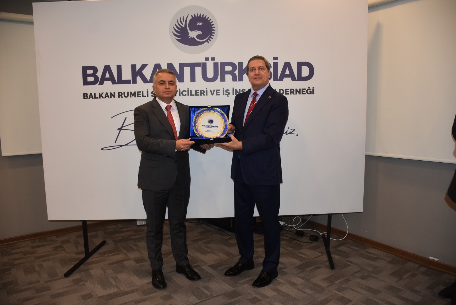 Program, soru-cevap bölümüyle son buldu ve BALKANTÜRKSİAD Yönetim Kurulu Başkanı İskender İskenderoğlu, Ticaret Bakanlığı İhracat Genel Müdürü Mehmet Ali Kılıçkaya’ya teşekkür plaketi takdiminde bulundu.