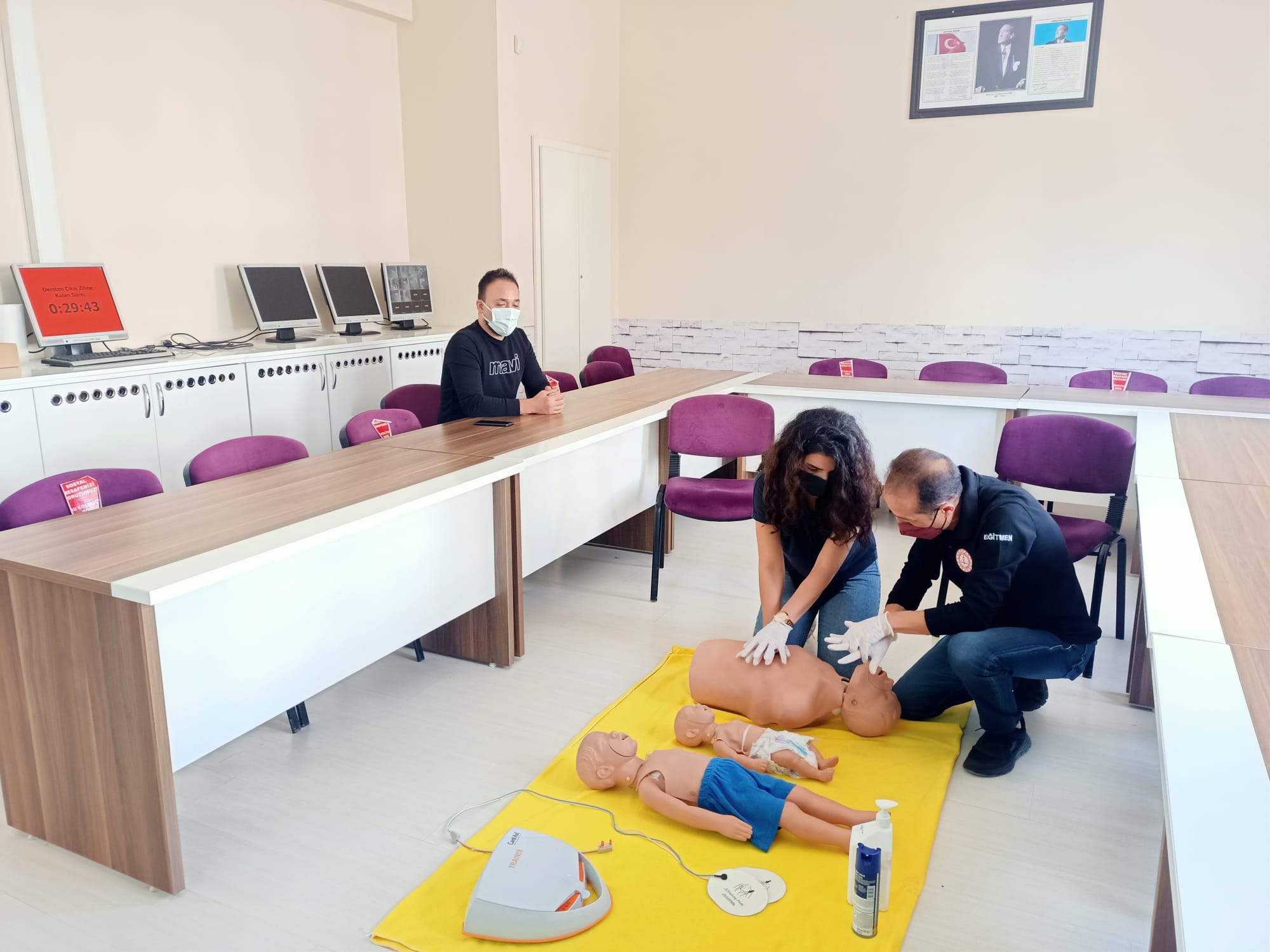 İlk Yardım Eğitim Merkezi Müdiresi Yasemin Uluç ve 8 eğitmenin görev aldığı merkezde, yoğun bir şekilde yürütülen ilk yardım eğitimleri ile proje kapsamında yer alan standart eğitim programı doğrultusunda 18 saat uygulamalı ilk yardım eğitimi veriliyor. Eğitim sonunda kursiyerlere sertifikaya dayalı ilk yardımcı yeterliliğinin kazandırılması için sınav uygulaması gerçekleştirilecek.