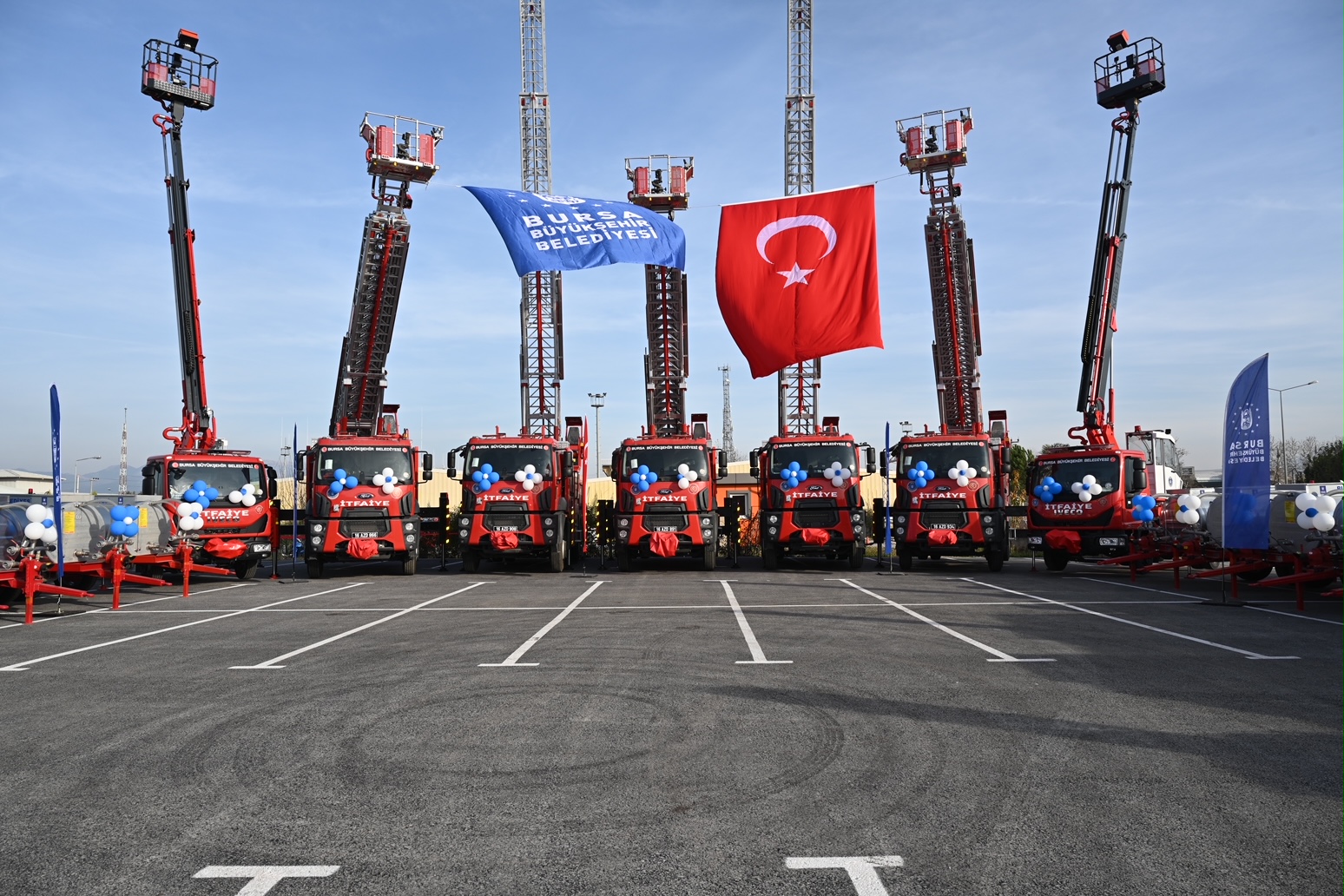 Bursa Büyükşehir Belediyesi halkın can ve mal güvenliğini doğrudan ilgilendiren en önemli hizmetlerden biri olan itfaiye teşkilatını her geçen gün güçlendiriyor. Haziran ayında 7 yeni itfaiye aracı ve 25 yangın söndürme su tankeriyle güçlenen itfaiye filosuna şimdi de 16 itfaiye aracı ve 25 yangın söndürme su tankeri eklendi.