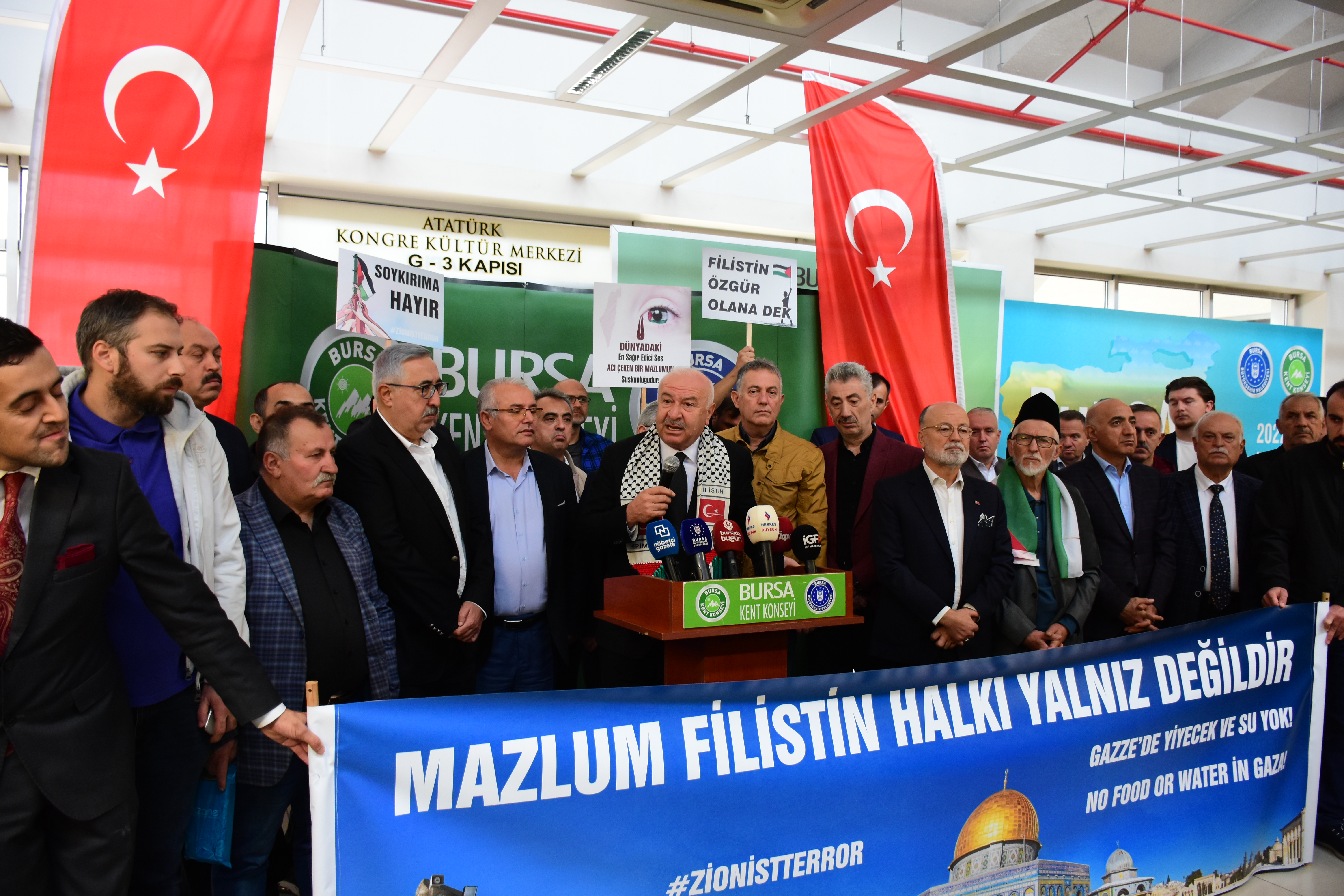 Bursa Kent Konseyi Başkanı Şevket Orhan, düzenlediği basın toplantısı ise Filistin’de yaşanan İsrail zulmüne tepki gösterdi.