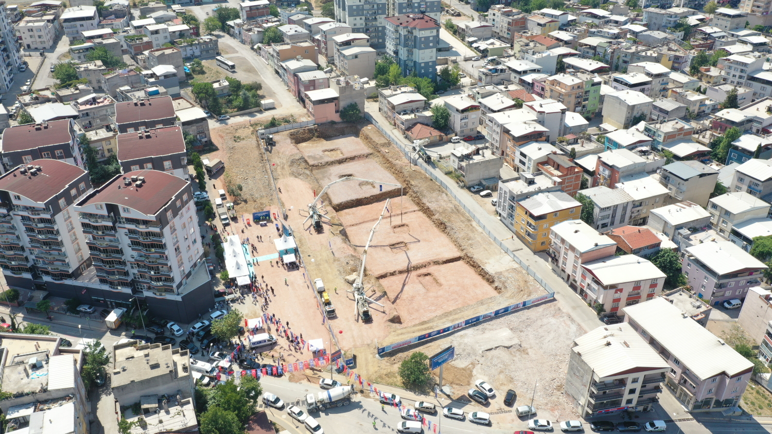 Konuşmaların ardından, Yiğitler Mahallesi 1. Etap Kentsel Dönüşüm Alanı’ndaki ilk harç ‘protokol üyeleri tarafından’ törenle döküldü.