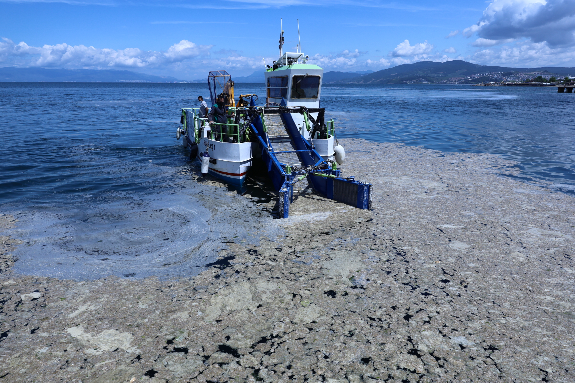 Bursa sahillerinde Mart ayının ikinci haftasından sonra su yüzüne çıkan ancak katı halde olmadığı için deniz temizleme araçları ile toplanamayan müsilaj, katılaşma ile birlikte Bursa Büyükşehir Belediyesi tarafından temizlenmeye başladı.