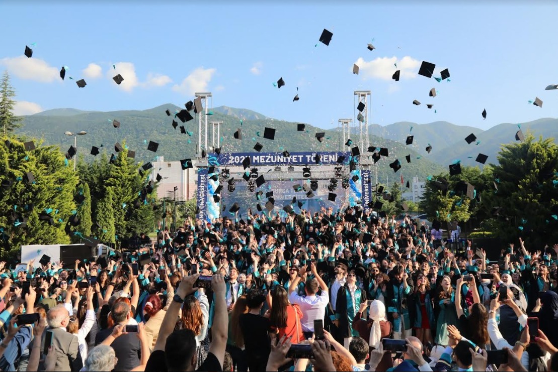 yeni mezun öğrencilerini uğurladığı mezuniyet töreni Bursa Büyükşehir Belediye Başkanı Alinur Aktaş,