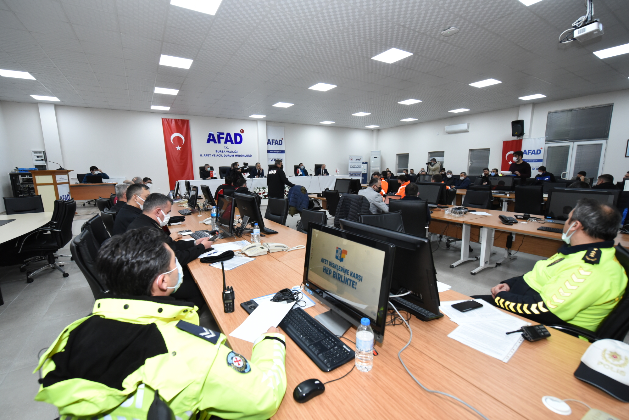Tüm Türkiye'yi etkisi altına alması beklenen kar yağışının Bursa'da yaşamı olumsuz etkilememesi amacıyla tüm önlemler alındı. Bursa Valisi Yakup Canbolat ve Büyükşehir Belediye Başkanı Alinur Aktaş, gecenin ilerleyen saatlerinde AFAD'da kurulan kriz merkezini ziyaret edip, çalışmaları yerinde inceledi.