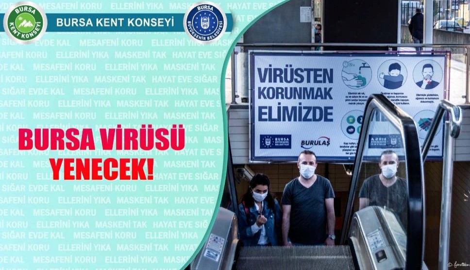 Bursa Kent Konseyi tarafından ‘Bursa virüsü yenecek’ sloganıyla başlatılan kampanya sayesinde toplumun maske, mesafe ve temizlik kurallarına karşı duyarlılığının artırılması hedefleniyor.