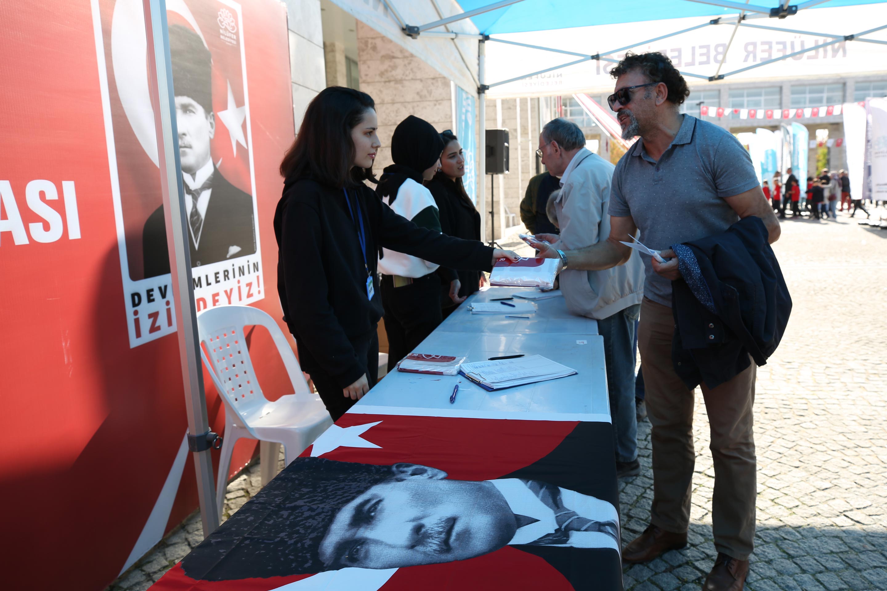 Nilüfer Belediyesi, kentte 29 Ekim Cumhuriyet Bayramı coşkusunu doyasıya yaşatmak için hazırlıklarını sürdürüyor. Nilüfer Belediyesi’nin, her Cumhuriyet Bayramı öncesi geleneksel hale gelen ücretsiz Atatürk posteri dağıtımı, bu yıl da devam ediyor. Vatandaşlar, Nilüfer Belediyesi Halk Evi önündeki Cumhuriyet Meydanı ile Yüzüncüyıl Mahallesi’ndeki Nâzım Hikmet Kültürevi önünde bulunan stantlardan, ücretsiz şekilde Atatürk posterini alabiliyor. Saat 14.00-19.30 saatleri arası gerçekleştirilen poster dağıtımında, vatandaşlara kişi başı bir adet poster veriliyor.