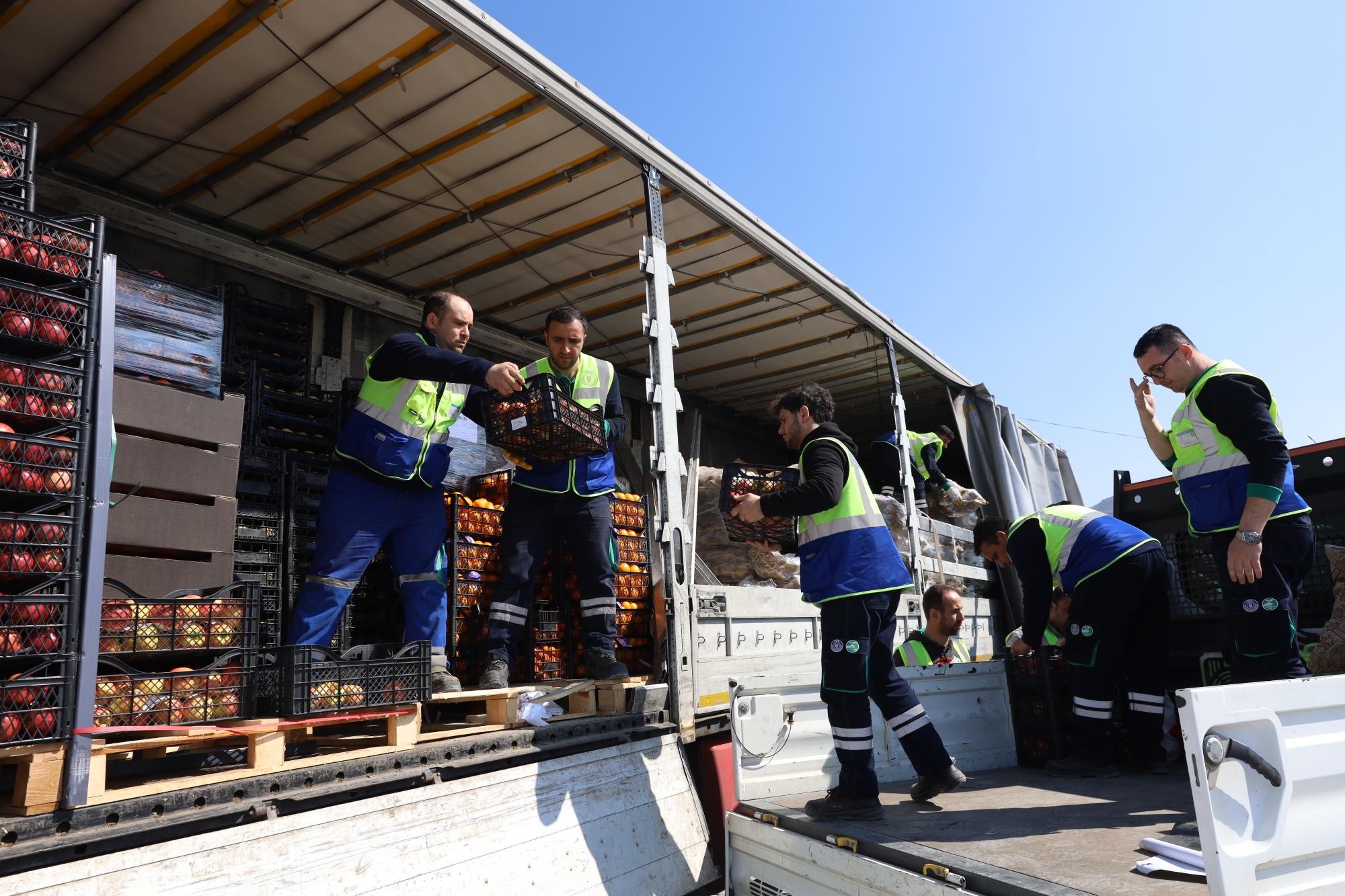 Bursa Büyükşehir Belediyesi’nin Hatay’da deprem yaralarını sarma çalışmalarına toplam 81 personelle destek veren Tarım Peyzaj A.Ş., Bursa’dan getirdiği meyve ve sebzeleri düzenli olarak afetzedelere dağıtıyor. Bugüne kadar 150 ton meyve ve sebzenin dağıtımını gerçekleştiren Tarım Peyzaj A.Ş., önceki gün gelen 18 ton patates ile kışlık meyveyi de ‘çadır kentlerin bulunduğu alanda’ ihtiyaç sahiplerine ulaştırdı.