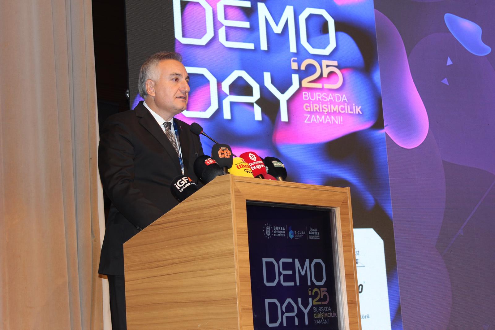 Bugün bu salondan umutla, enerjiyle, yeni bağlantılarla ve "Ben bunu yapabilirim" inancıyla ayrılmanızı diliyoruz. Demo Day 2025’ in, kentimizin teknoloji ve inovasyon yolculuğunda yeni kapılar açmasını, Bursa'mızı fikirlerin başkenti haline getirmesini temenni ediyoruz. Bu organizasyona emek veren ve katkı sağlayan tüm ekip arkadaşlarımıza, destek veren kurumlara ve geleceğe umutla bakan girişimcilere yürekten teşekkür ediyor, hepinize tekrar sevgi, saygılar sunuyorum.”