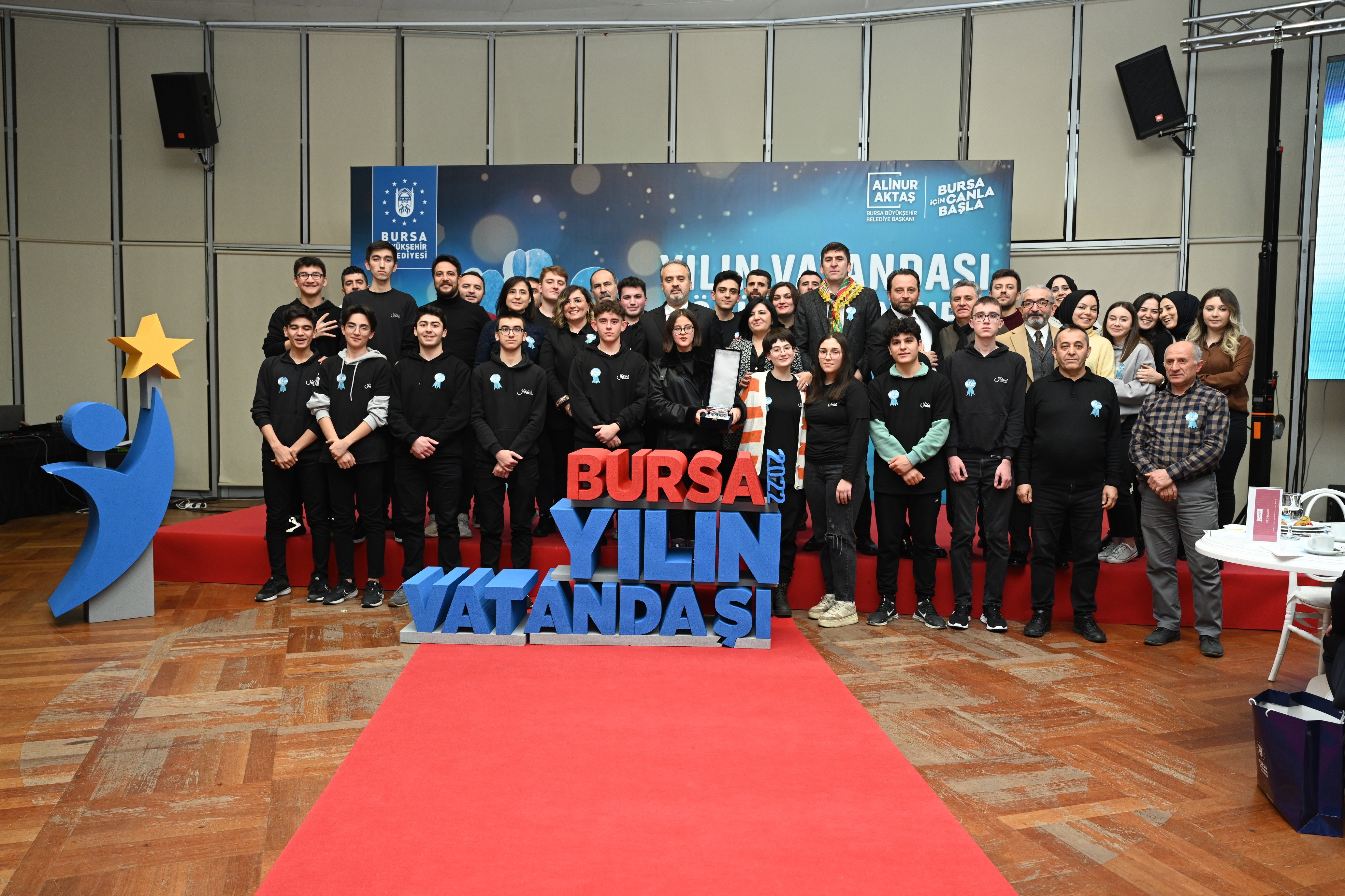 Yılın Vatandaşının açıklandığı törene Bursa Büyükşehir Belediye Başkanı Alinur Aktaş, İl Milli Eğitim Müdürü Serkan Gür ve Bursa Kent Konseyi Başkanı Şevket Orhan ile ayın vatandaşları katıldı. Büyükşehir Belediye Başkanı Alinur Aktaş, yaptıkları iyilik hareketleriyle örnek oluşturan tüm kişi ve gruplara teşekkür etti. İki yıl önce başlattıkları ayın vatandaşı uygulamasının adeta kartopu misali büyüdüğünü ifade eden Başkan Aktaş, "Bu ülkeye, bu şehre değer katmak, bir canlının, bir insanın hayatına dokunmak çok değerli. Hele bunu tamamen gönüllü olarak, karşılık beklemeksizin yapmak çok kıymetli. Bu nedenle halk oylaması ile yılın vatandaşı seçilen öğretmenlerimizi gönülden kutluyorum. Yaptıkları davranışlarla hayatlara, gönüllere dokunan tüm iyilik elçilerimize teşekkür ediyorum” dedi. Bursa’da 2022 yılının ‘yılın vatandaşı’ seçilen Hürriyet Mesleki ve Teknik Anadolu Lisesi öğretmenleri, kristal plaketlerini Büyükşehir Belediye Başkanı Alinur Aktaş’ın elinden aldı.