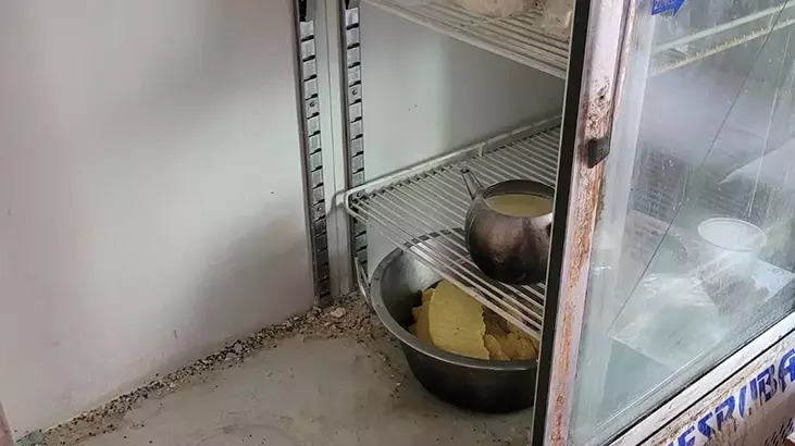 İşyerinde yapılan incelemede, peynirlerin kirli ortamda, açıkta ve kovalarda üretildiği görüldü. Ayrıca, peynirlerin hazırlanmasında kullanılan malzemelerin de hijyenik olmadığı tespit edildi.