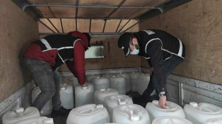 Bursa'da sahte içki faciasından sonra operasyonlarını sıklaştıran polisler tutuklanan Uğur K. adına gönderilen 1 ton içkiye el koydu.
