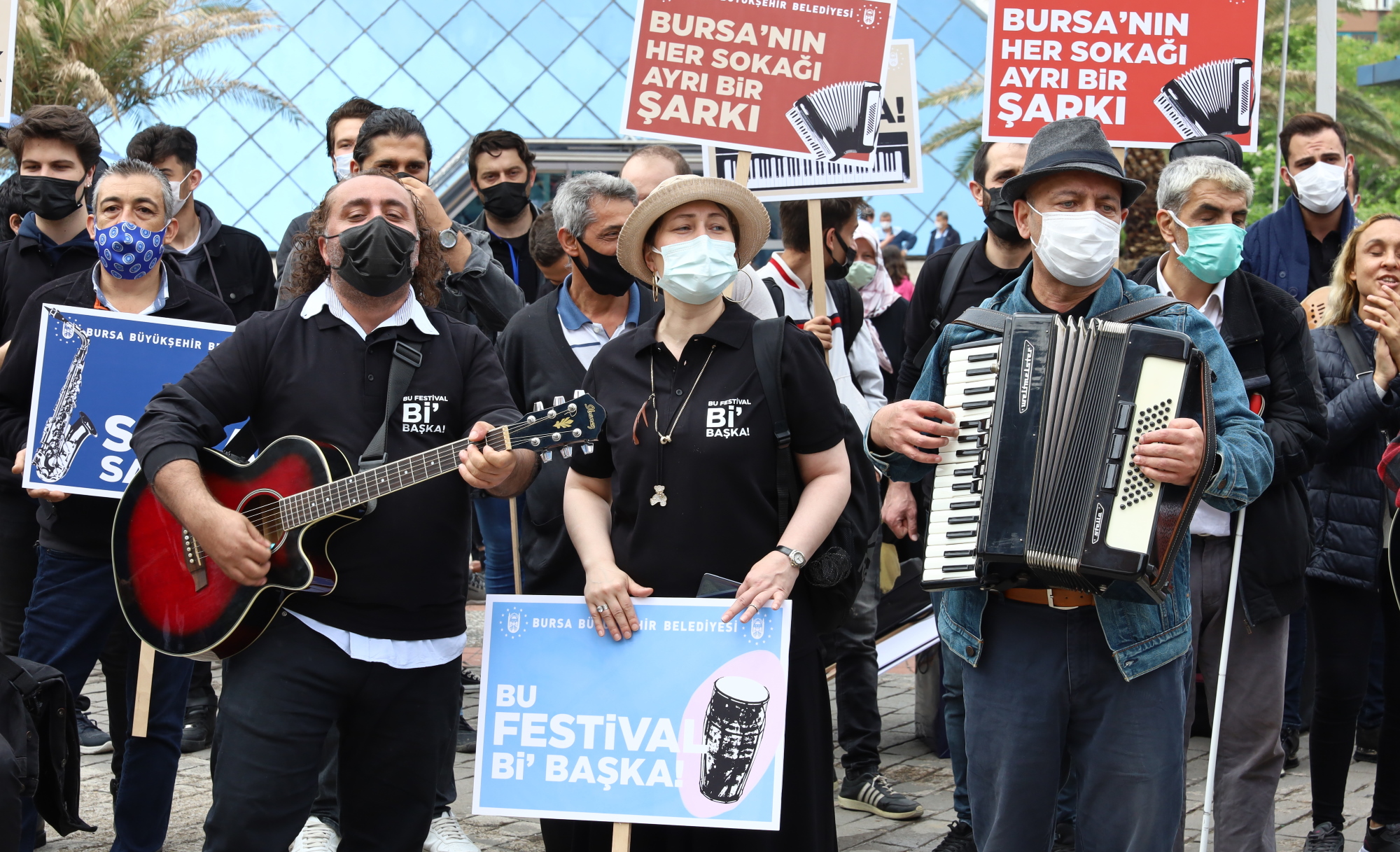 Geçimini sokak müzisyenliği ile sağlayan, kentin farklı cadde ve sokaklarında sağlıksız ortamlarda sanatlarını icra ederken zaman zaman bölge esnafından da tepki alan sokak müzisyenleri, Büyükşehir Belediyesi’nin, “Bursa'nın Her Sokağı Ayrı bir şarkı” projesiyle sağlıklı ortamlarda sanatlarını icra etme imkanına kavuşmuştu. Bu proje ile bir taraftan sokak müzisyenlerini destekleyen diğer taraftan da gürültü kirliliğinin önüne geçen Büyükşehir Belediyesi, şimdi de Bursa Sokak Sanatçıları Festivali düzenledi. Pandemi koşulları göz önünde bulundurularak düzenlenen festival Cumhuriyet Caddesi’ndeki kortej yürüyüşü ile başladı. Büyükşehir Belediyesi Başkanvekili Ahmet Yıldız’ın da katıldığı yürüyüş, sokak müzisyenlerinin yanı sıra palyoça, jonglör ve pandomim sanatçısının gösterileri ile renklendi.