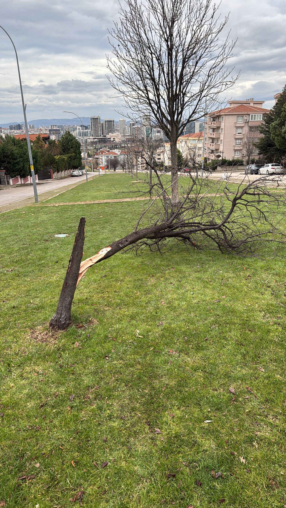 Fırtınanın etkisiyle ilçe genelindeki pek çok noktada ağaçlar köklerinden sarsılarak yollara, parklara ve park halindeki araçların üzerine devrildi.